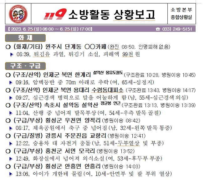 119 소방활동 일일상황보고(6.25.일) 17:00