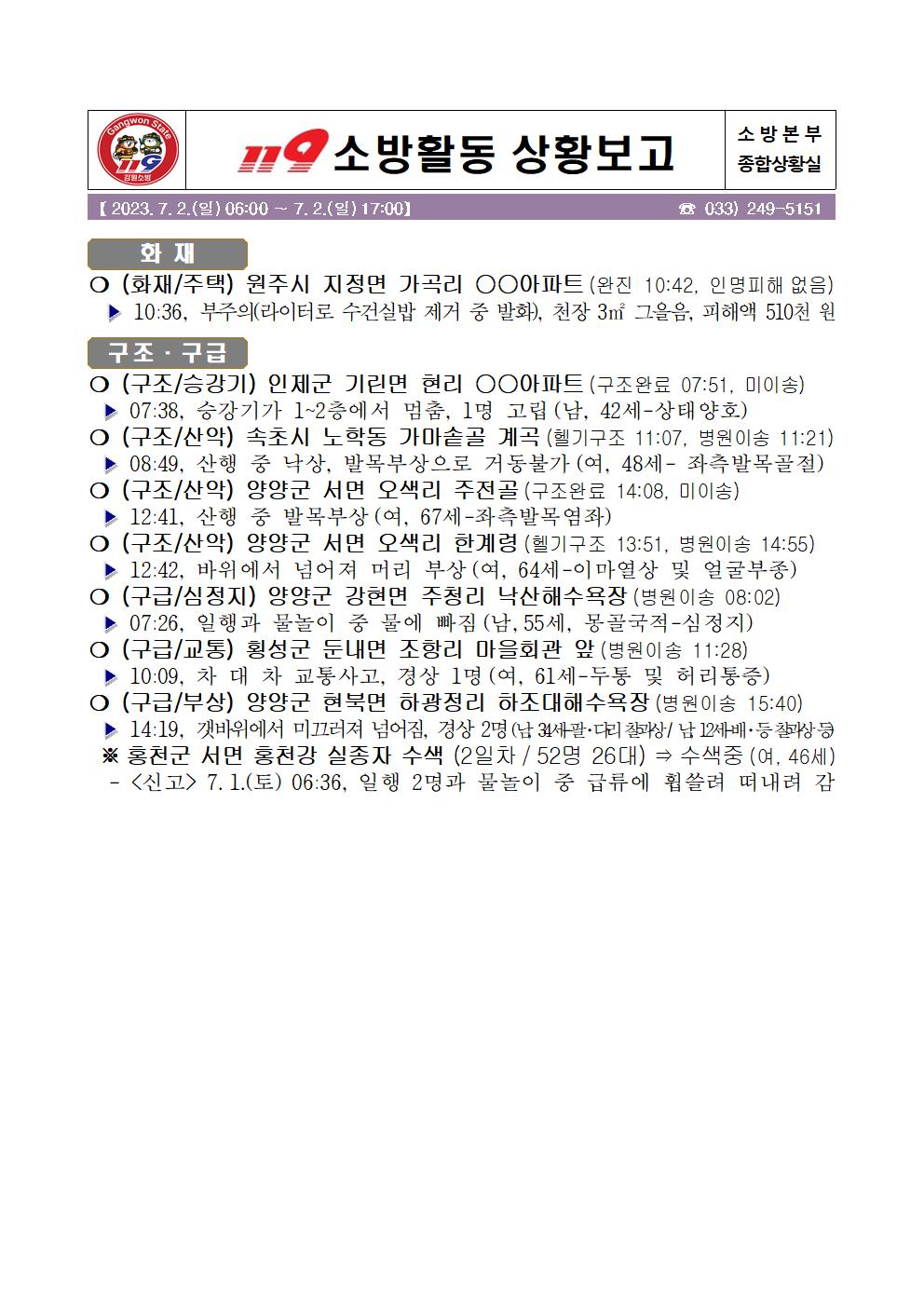 119 소방활동 일일상황보고(7.2.일) 06:00
