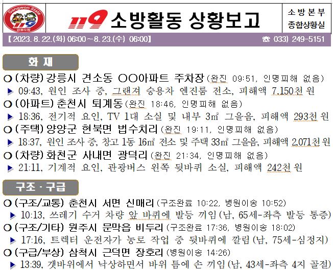 119 소방활동 일일상황보고(8.23.수) 06:00