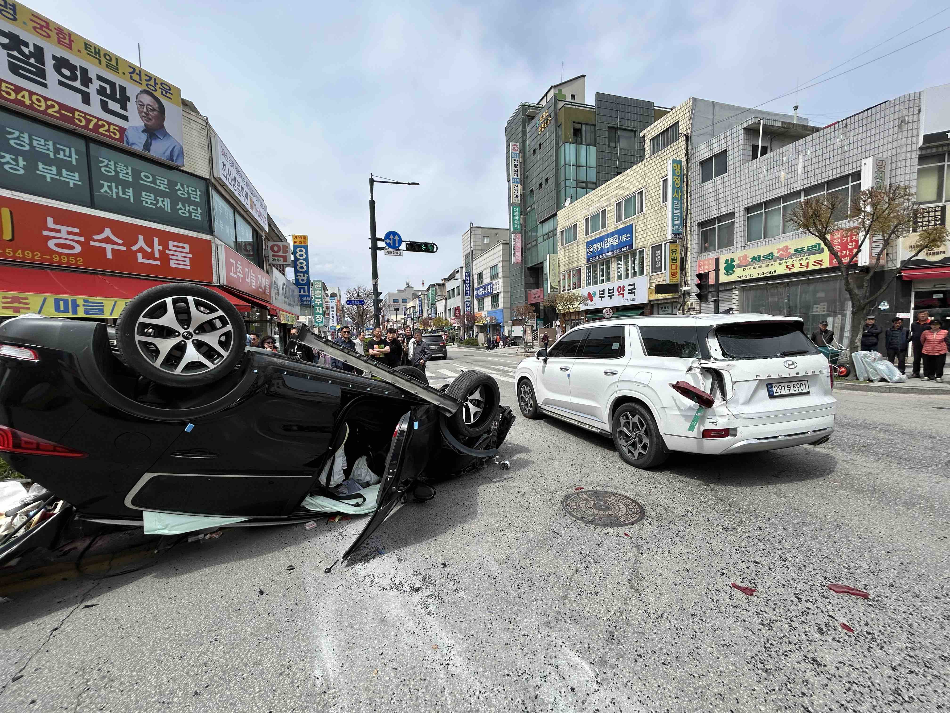 원주 중앙동 스포티지 전복사고 사진