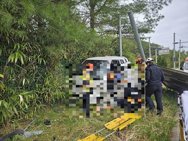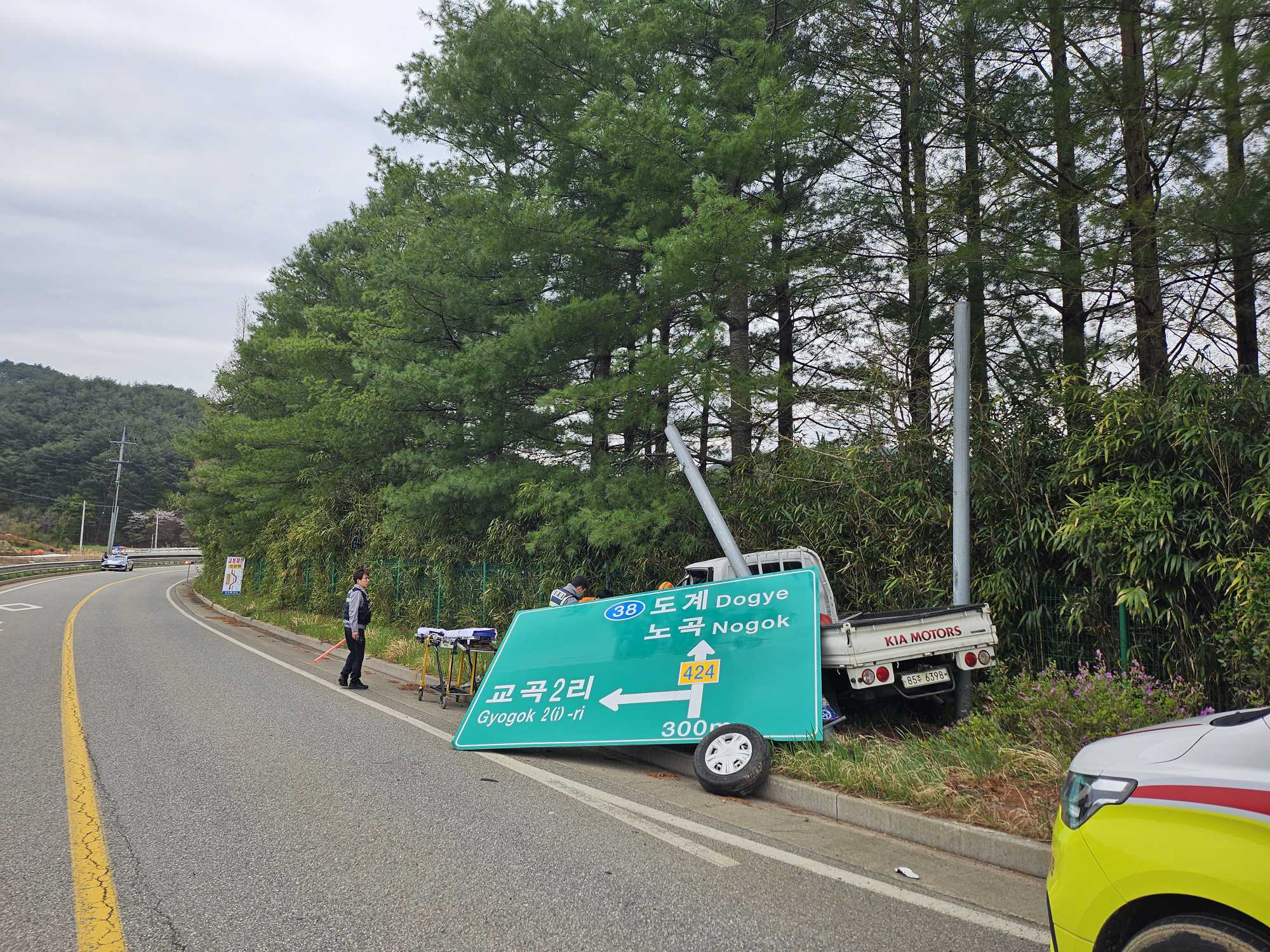삼척 근덕면 파인밸리 도로표지판 교통사고 사진 2점