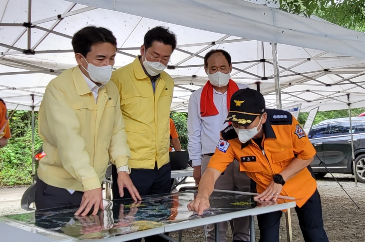 김진태 도지사, 원주 부론면 실종자 수색현장 방문