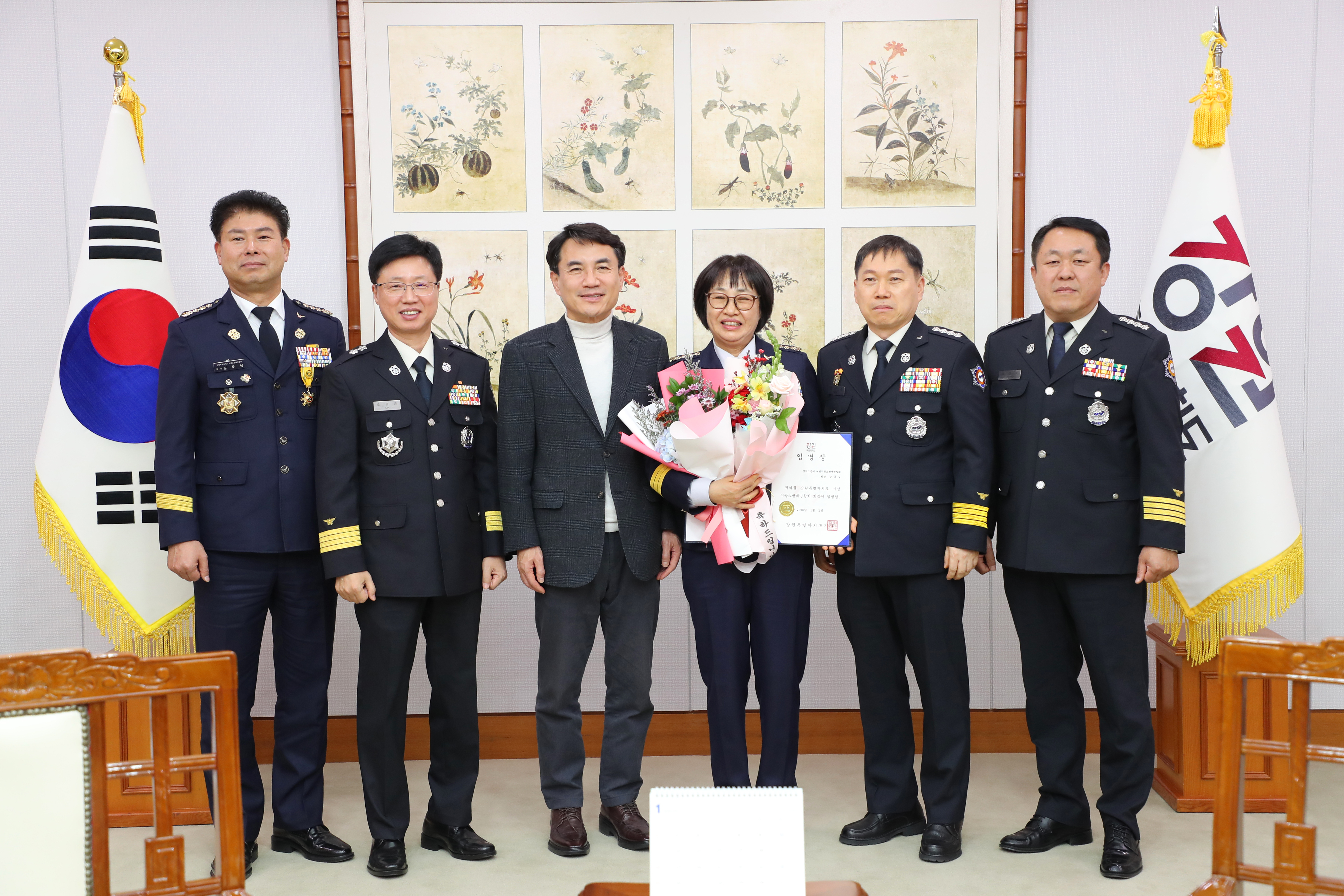 강원특별자치도 소방본부(본부장 오승훈)는 9일 도청 통상상담실에서 김진태 도지사가 참석한 가운데 신임 여성의용소방대연합회 임원 임명장 수여식을 개최했다.