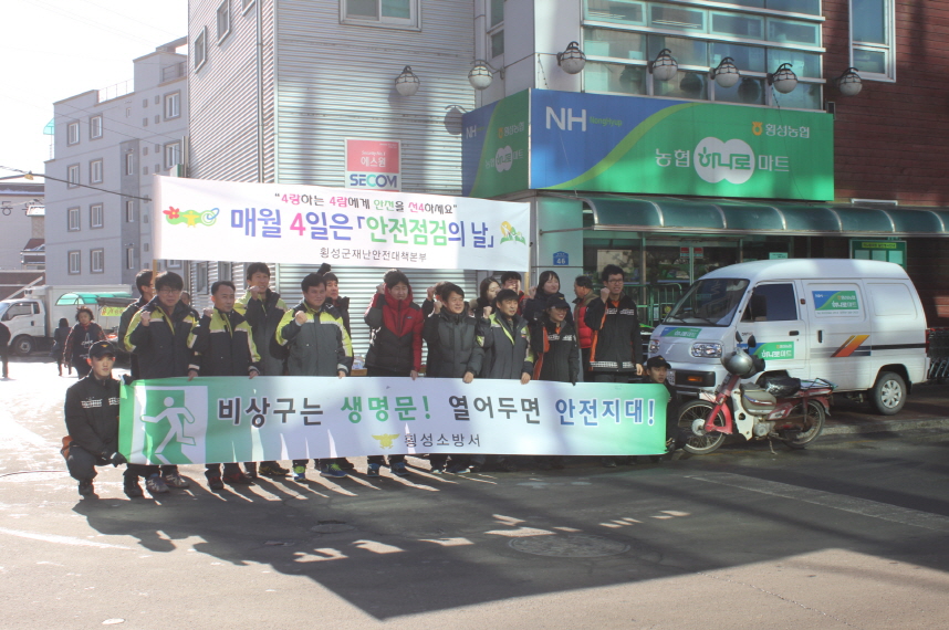 횡성소방서(서장 이병은)는 6일 오후 2시부터 횡성시장에서 횡성군, 횡성경찰서, 횡성의용소방대 등 유관기관이 참석한 가운데「생명의 문 비상구 안전점검의 날」캠페인을 실시하였다.