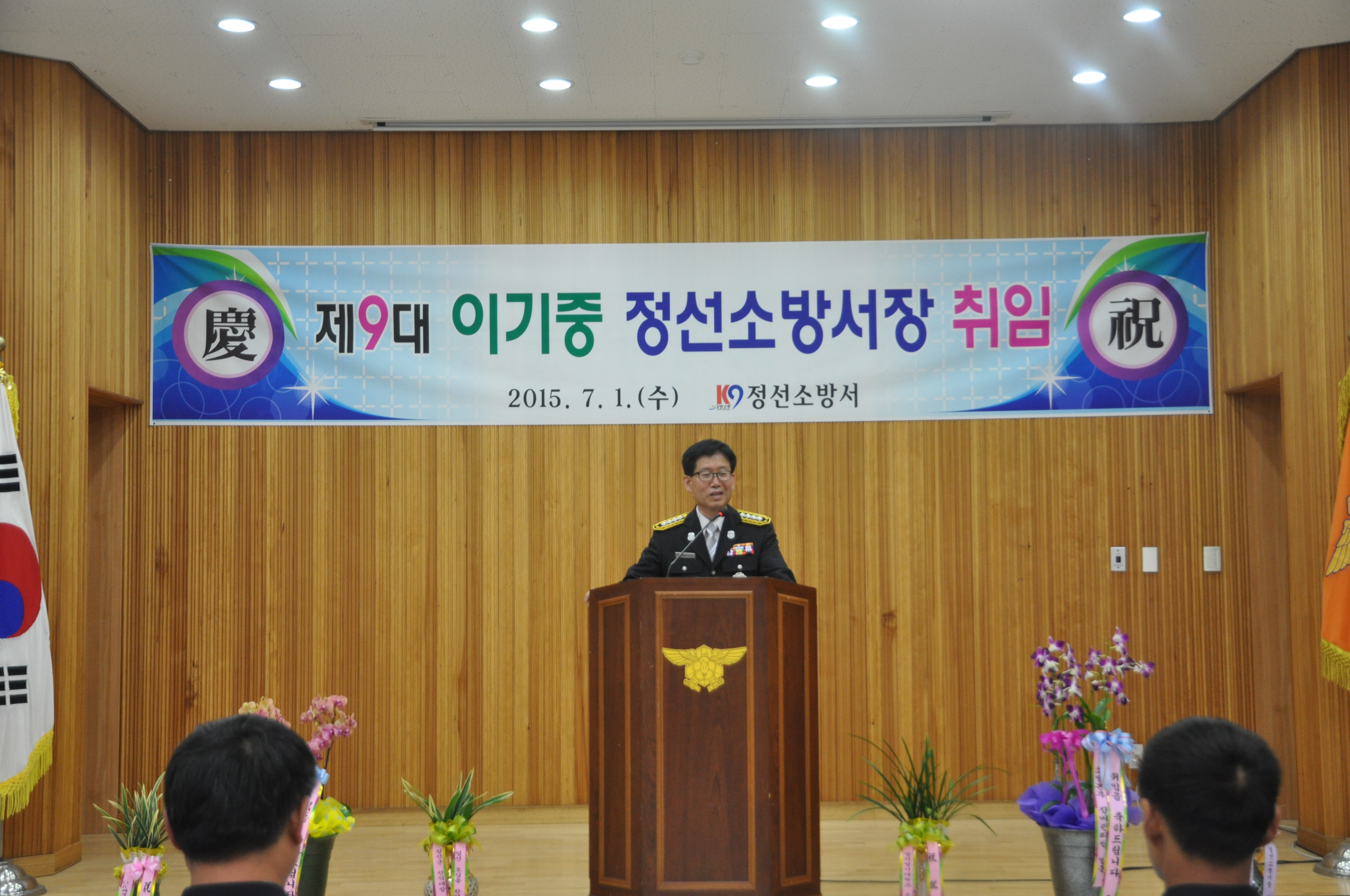 2015.07.01(수) 정선소방서 대회의실에서 제 9대 이기중 정선 소방서장님의 취임식이 있었습니다. 이 행사에는 정선소방서 전 직원이 참석해 제 9대 이기중 정선 소방서장님의 취임을 환영했습니다.