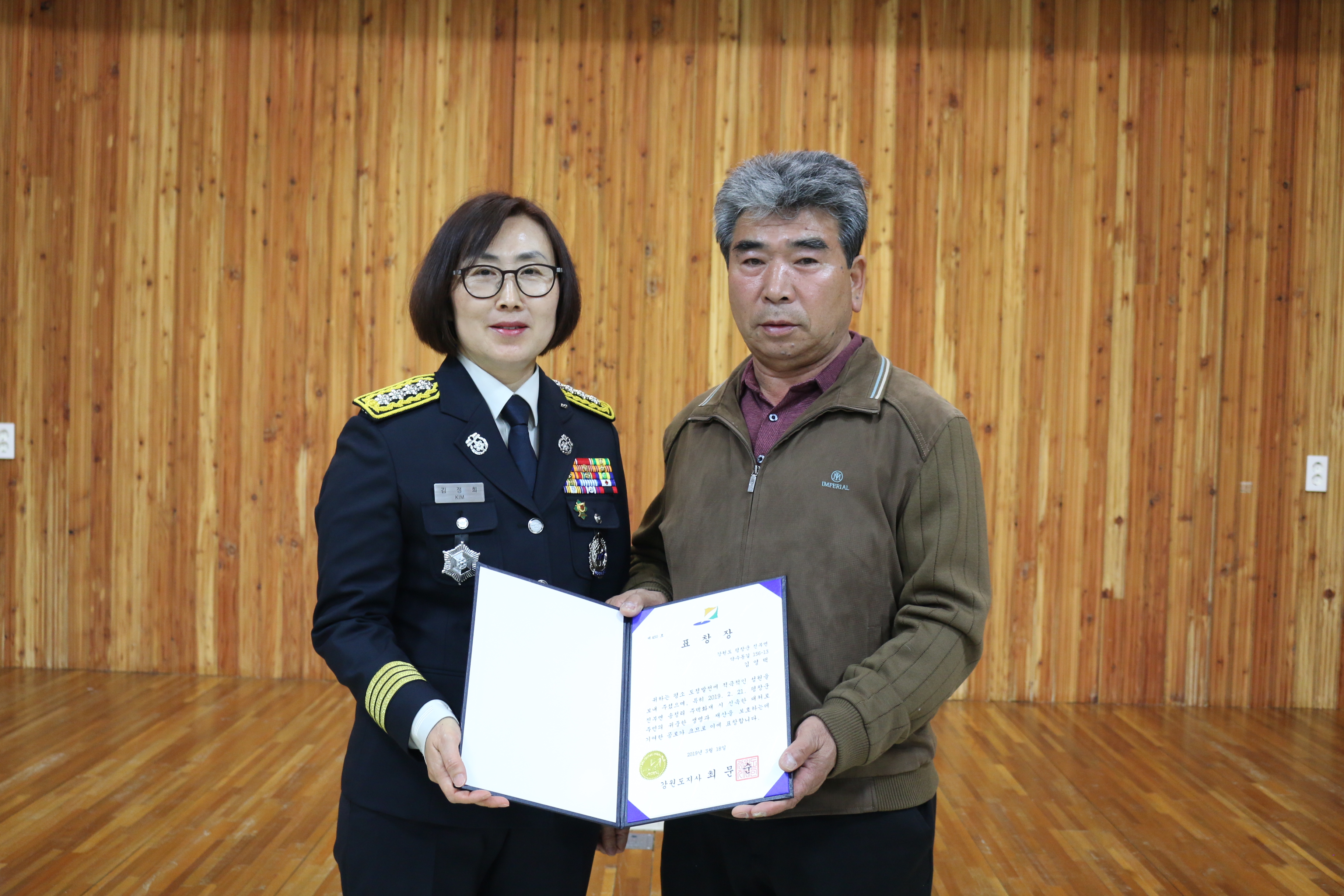(평창) 민간인 화재진압·인명구조 유공자 표창장 전수