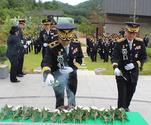 강원도소방본부(본부장 이흥교)는 17일 오전 11시 태백 순직소방인 추모비에서 세월호사고 수색 임무수행 중 불의의 사고로 순직한 소방공무원에 대한 추모행사를 거행하였다.
