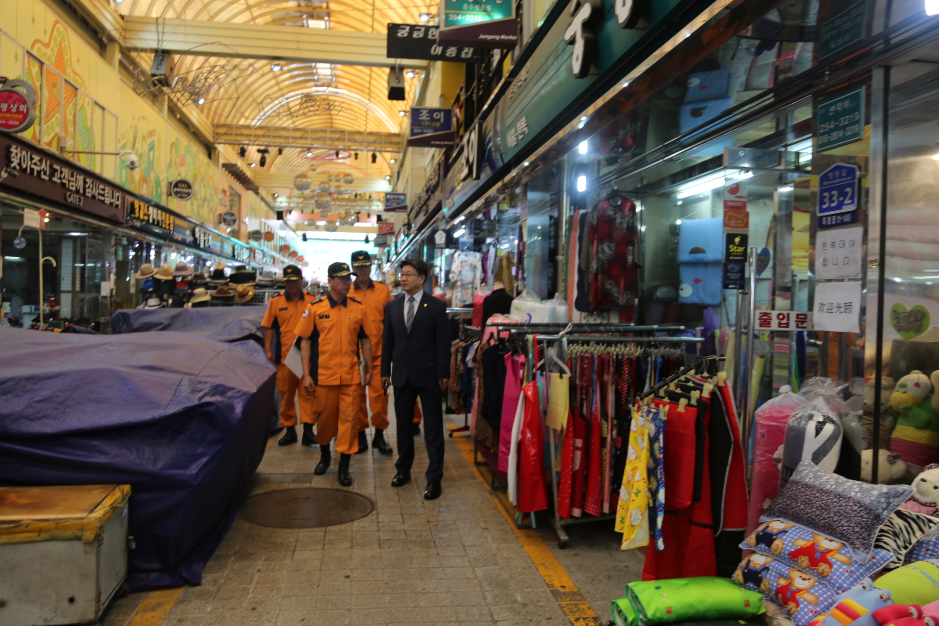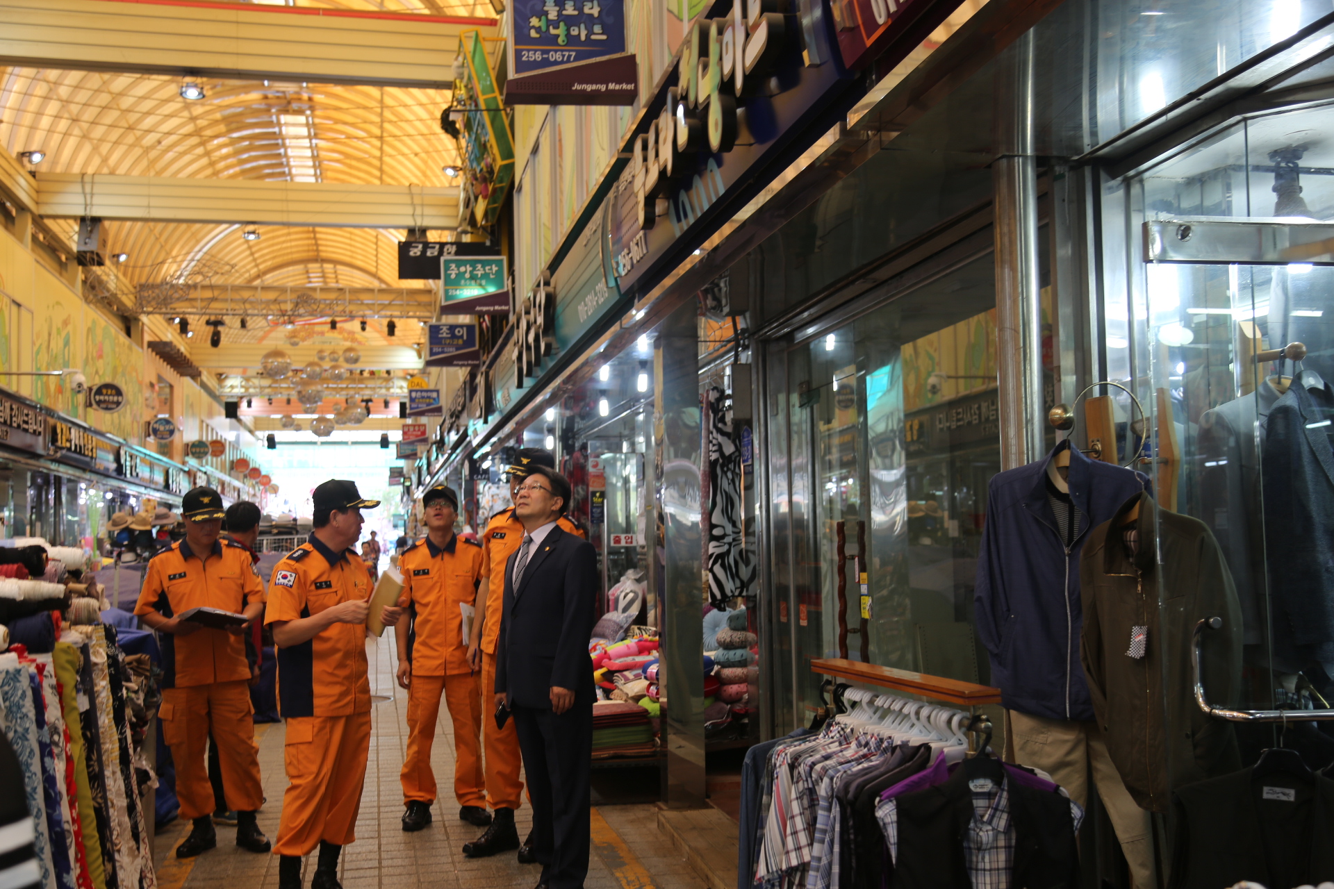 이번 점검에서 이흥교 본부장은 중앙 전통시장 조합 사무실을 방문하여 추석이 안전한 명절이 되기 위하여 소방통로 확보와 자체 훈련과 야간순찰 등을 당부하였으며 전통시장 내 소방시설 유지 관리 실태를 점검하였다.