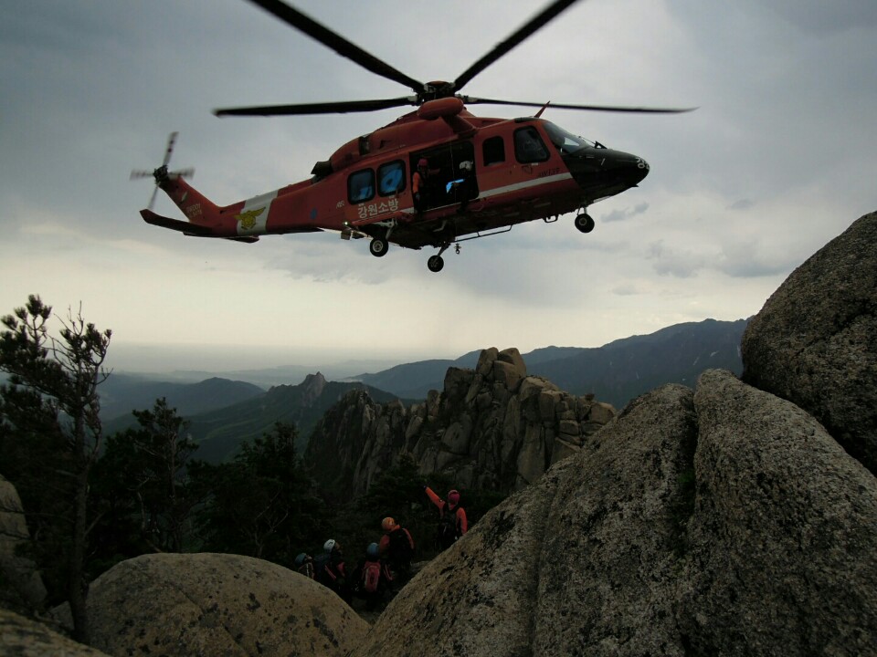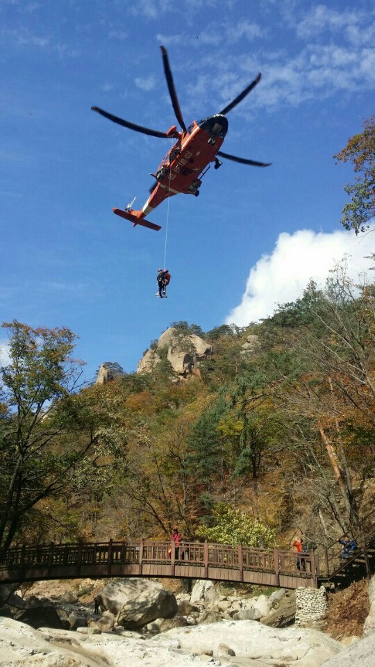 강원도소방본부(본부장 이흥교)는 6일부터 7일까지 양일간 특수구조단 항공․산악․수난구조대와 긴급기동팀 33명을 대상으로 설악산 대명 암장과 토왕성 폭포에서 산악사고 대비 인명구조 합동훈련을 실시하였다.