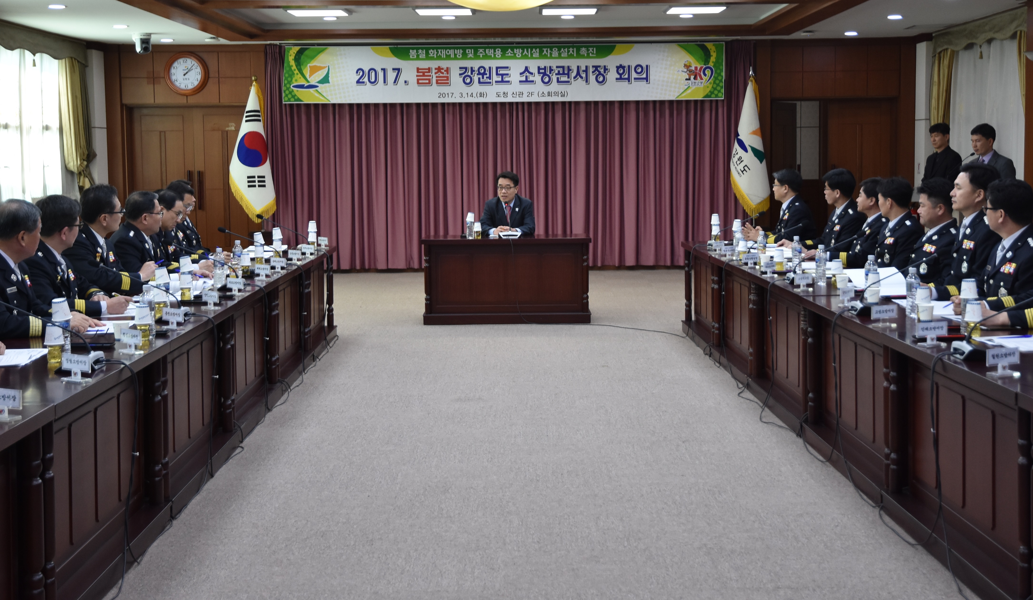 강원도소방본부(본부장 이흥교)는 15일 오후 2시 도청 신관 2층 소회의실에서 공직기강 확립과 봄철 소방안전대책 추진을 위한 ‘2017년 봄철 소방관서장 회의’를 개최하였다.