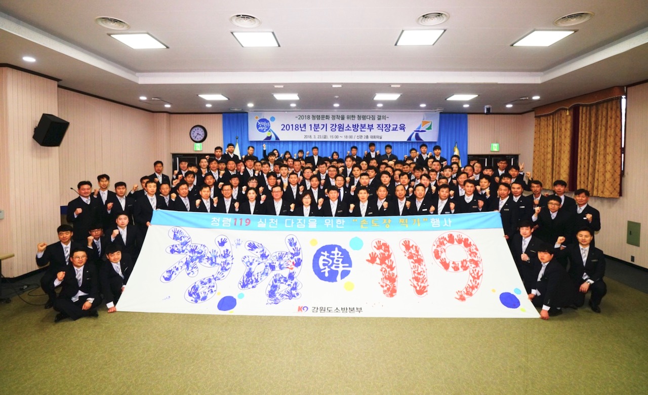 강원도소방본부(본부장 이흥교)는 23일 도청 신관 2층 대회의실에서 소방본부 전직원이 참석한 가운데 「청렴다짐 손도장 찍기」행사를 가졌다.