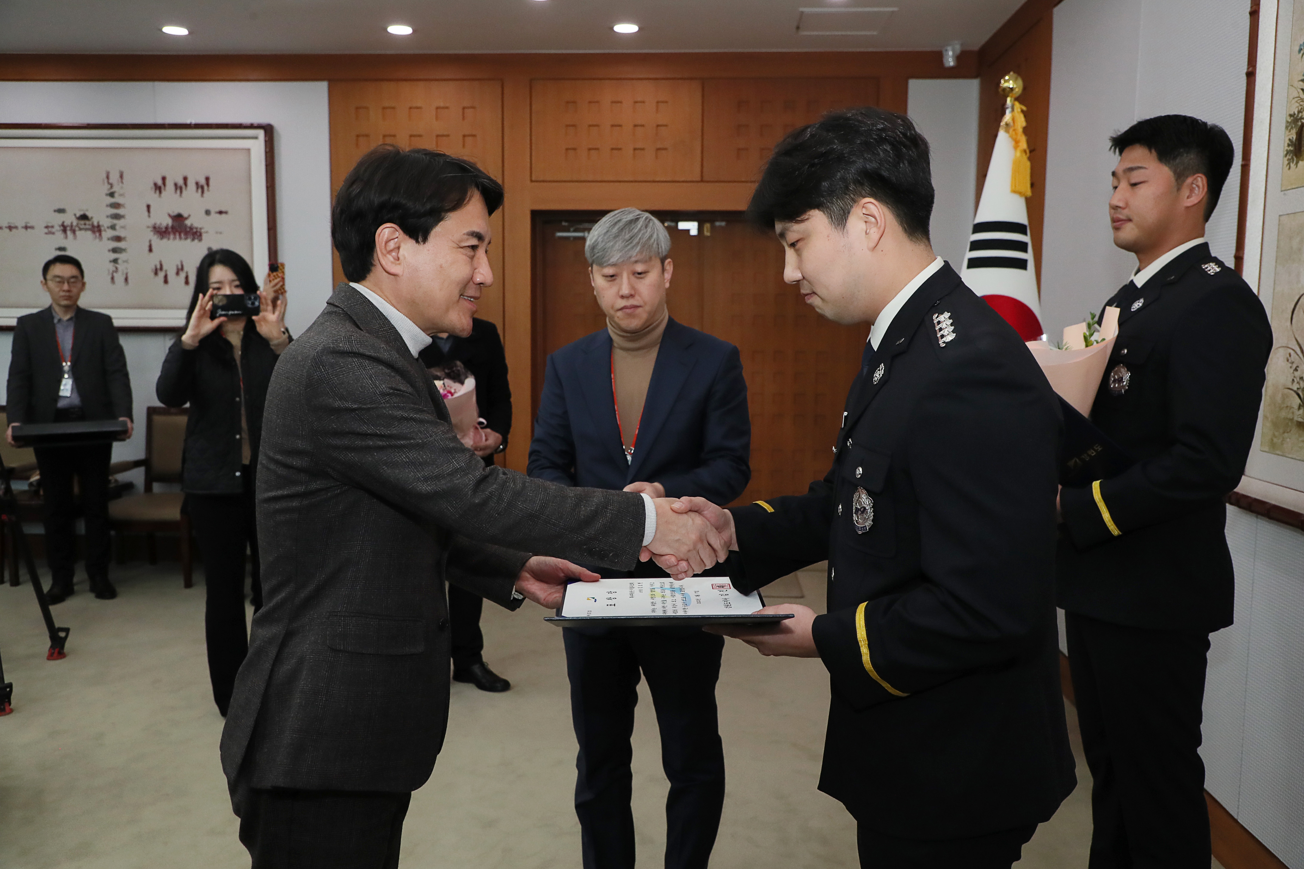 ○ 강원도소방본부(본부장 직무대리 이동학)는 17일 춘천소방서 송우근 소방교와 특수대응단 김보현 소방장이 지난해부터 강원도가 시행하는 선행의인(義人)에 선정되어 김진태 도지사의 표창을 수상했다고 밝혔다.