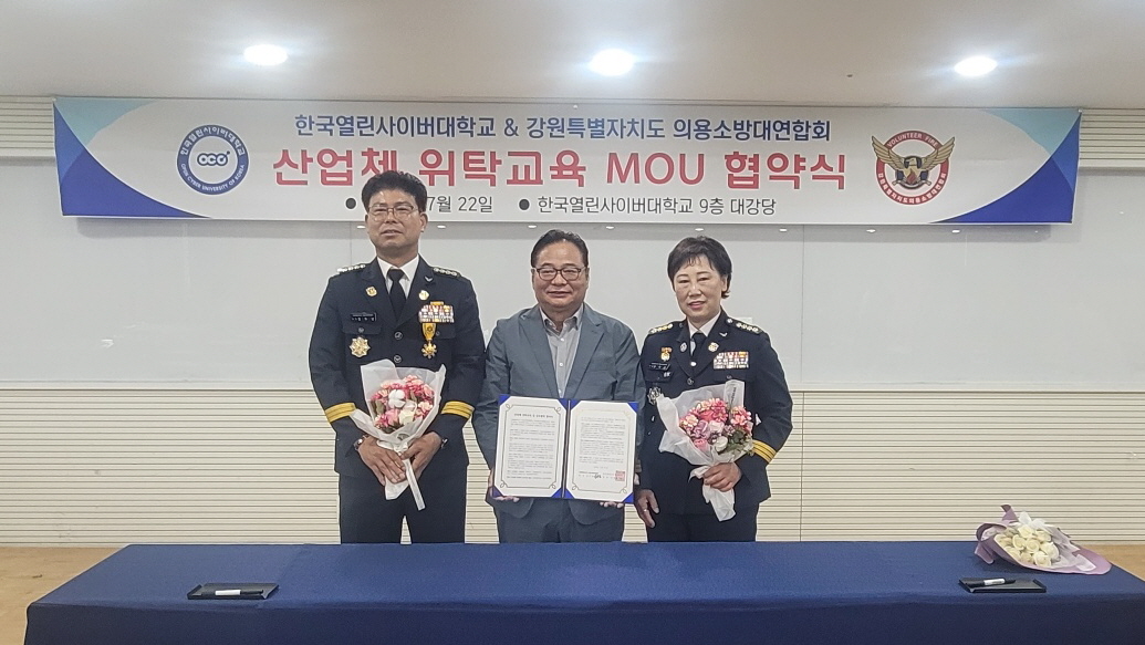 ○ 강원특별자치도 소방본부(본부장 김승룡)는 22일 서울 중랑구에 위치한 한국열린사이버대학교에서 강원특별자치도 의용소방대연합회 및 한국열린사이버대학교와 교육협력 협약을 체결했다고 밝혔다.