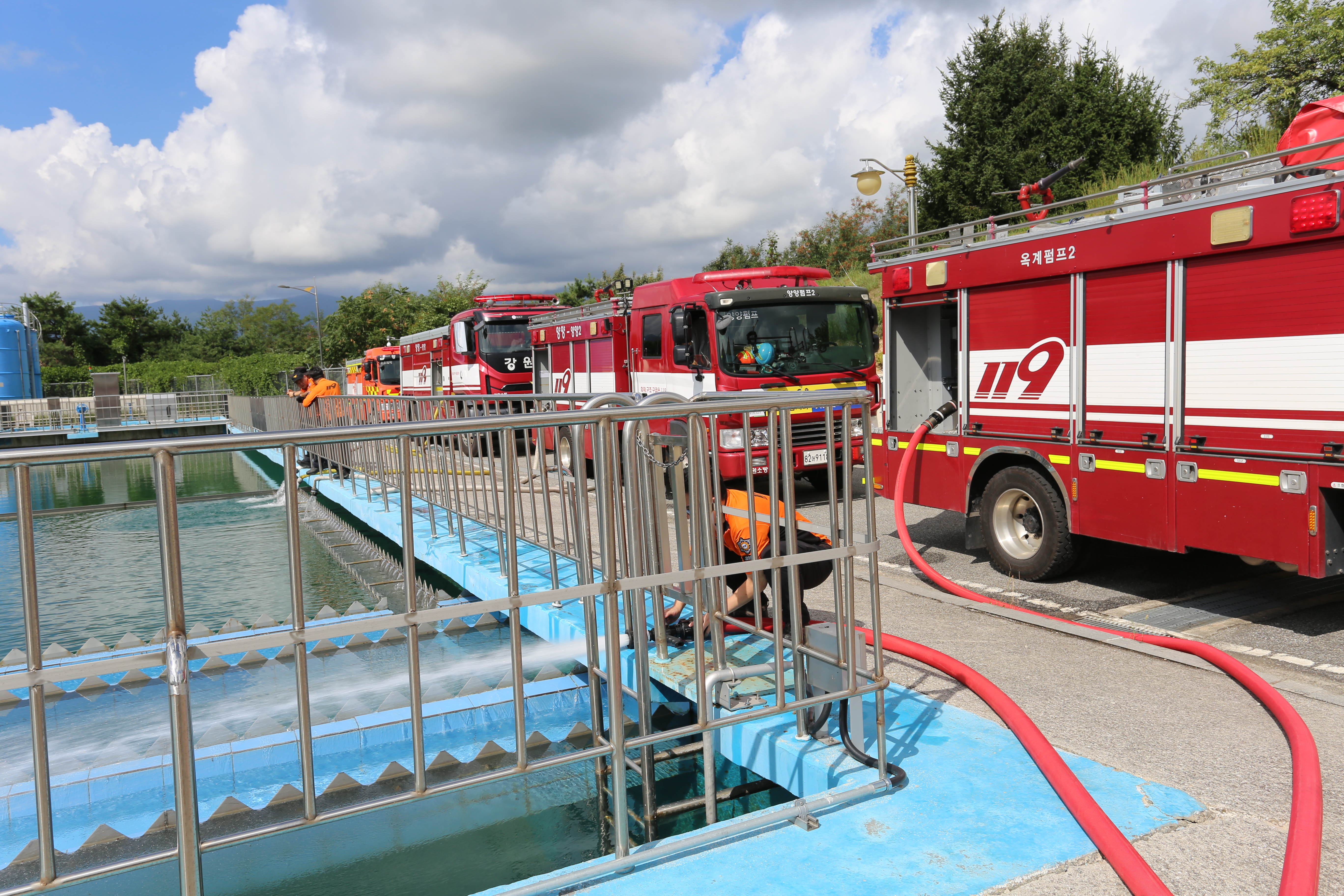○ 또한, 오봉댐 저수율이 10% 미만으로 하락할 경우 소방차량 22대를 추가로 동원해 총 44대 규모의 급수 지원 체계를 즉시 가동할 예정이다. 이를 위해 인근 시·군 소방서와의 협력체계, 차량 배치 및 운행 계획을 사전에 정비해 신속한 대응이 가능하도록 조치할 계획이다.