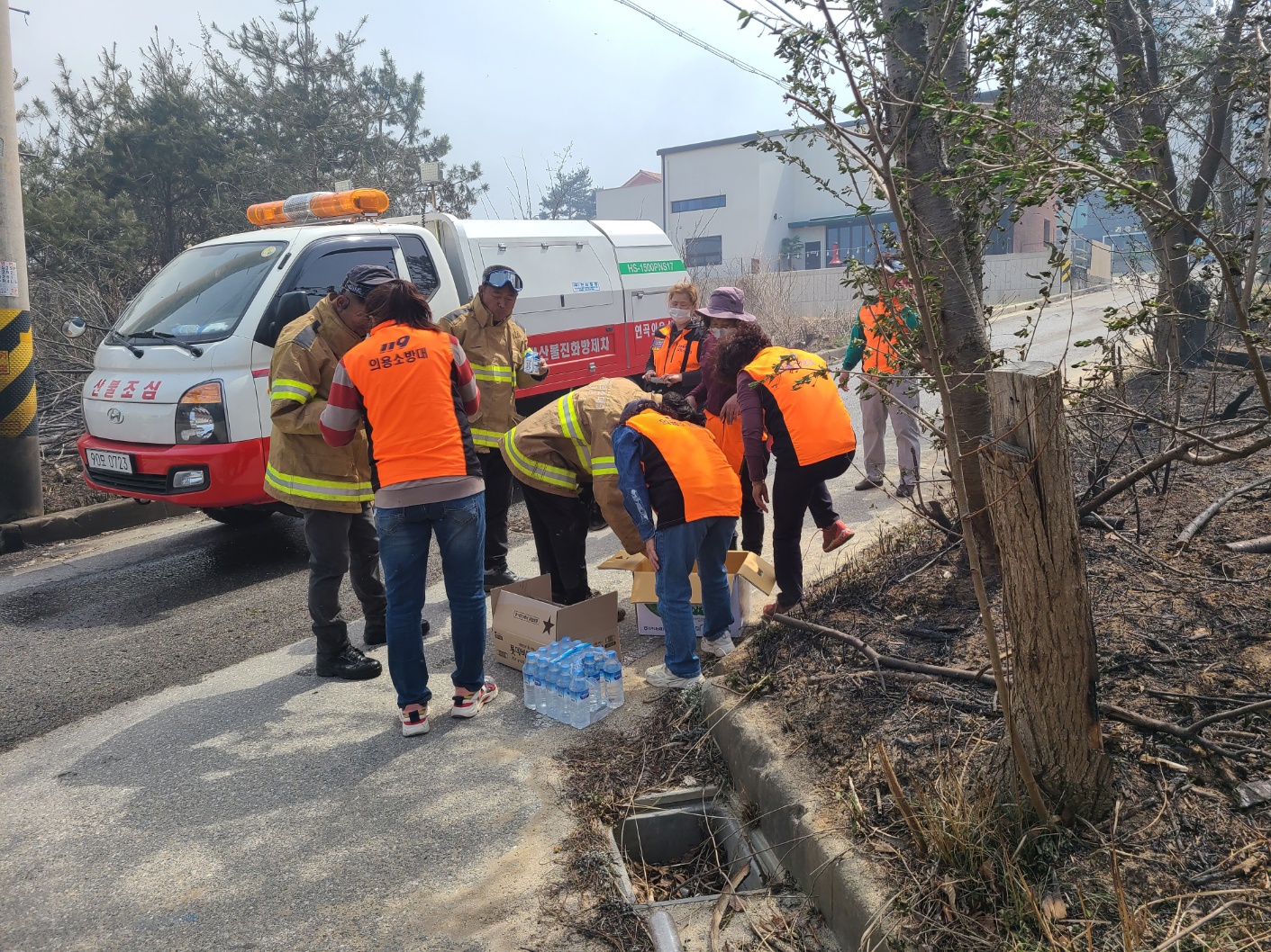 ❍ (여성대) 현장활동 의용소방대원 및 소방공무원 간식 배부