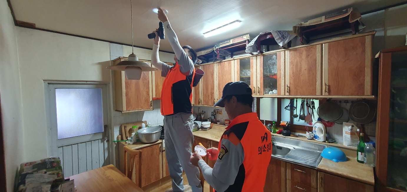 강릉남성의용소방대의 주택 내 화재예방시설(단독경보형감지기) 설치 봉사활동 결과입니다.