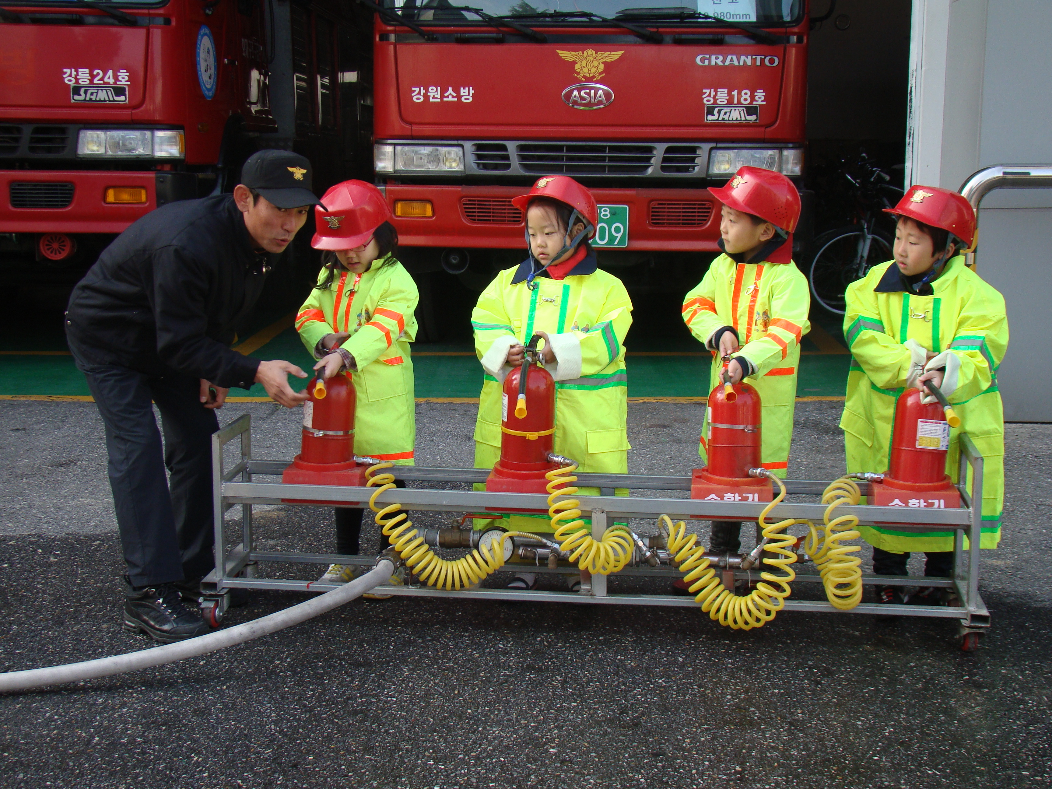 경포유치원 원생 및 교사들을 대상으로 화재 대피요령, 소화기 사용법 등의