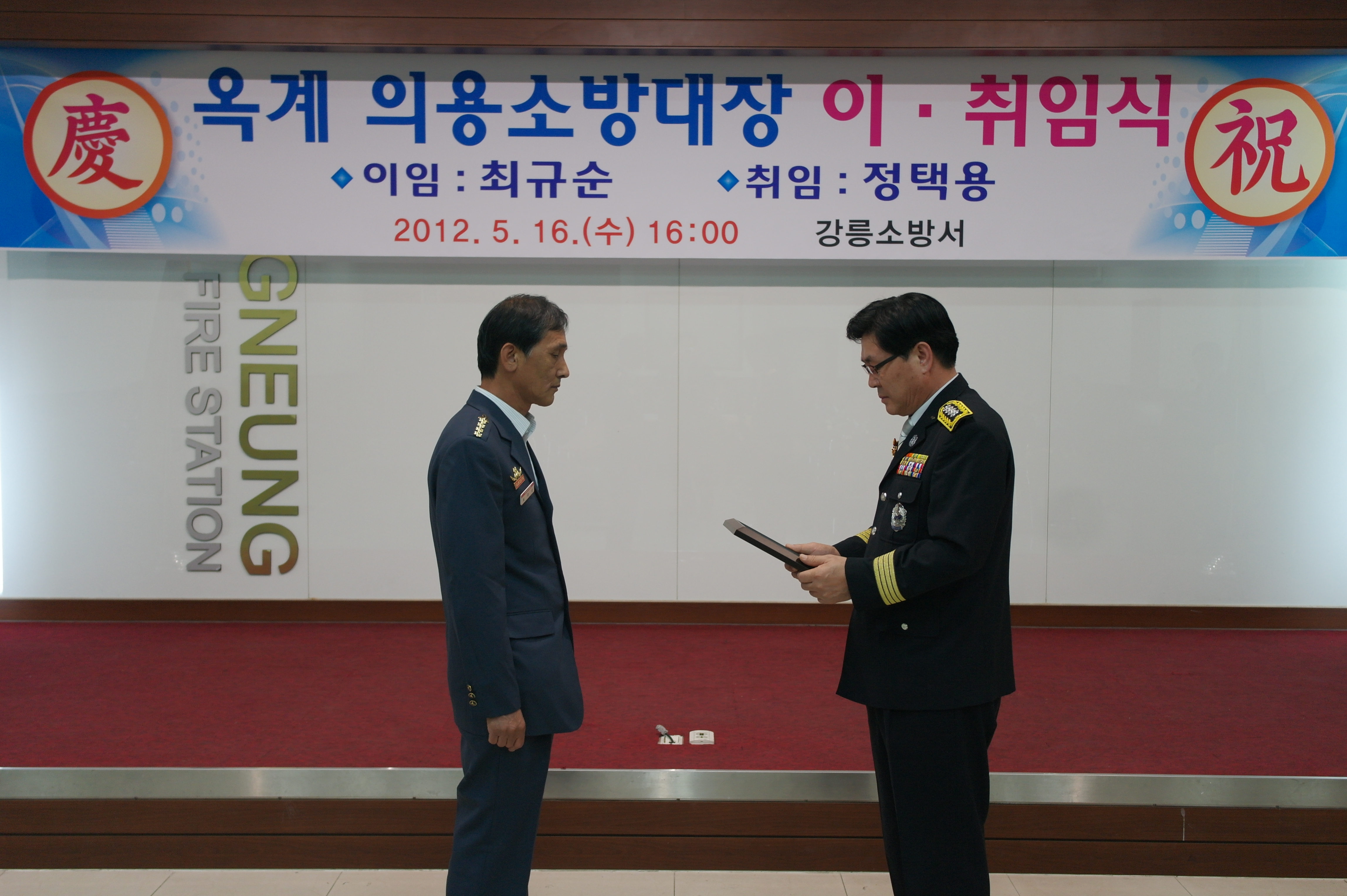 옥계의용소방대장 취임식