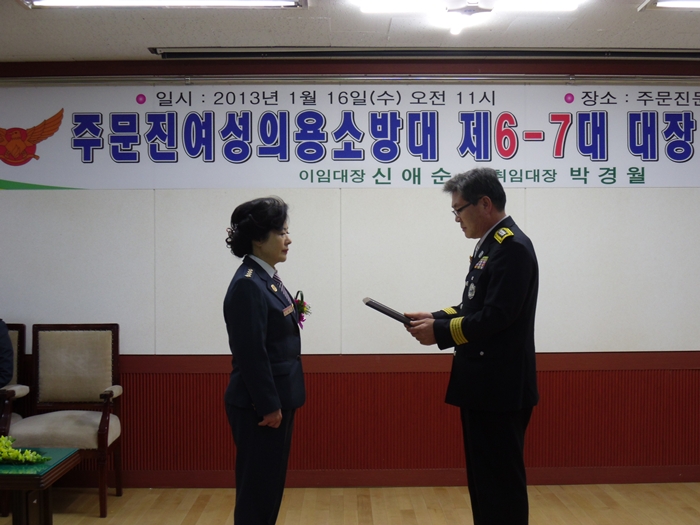 2013.1.16일자 주문진여성의용소방대장 이취임식