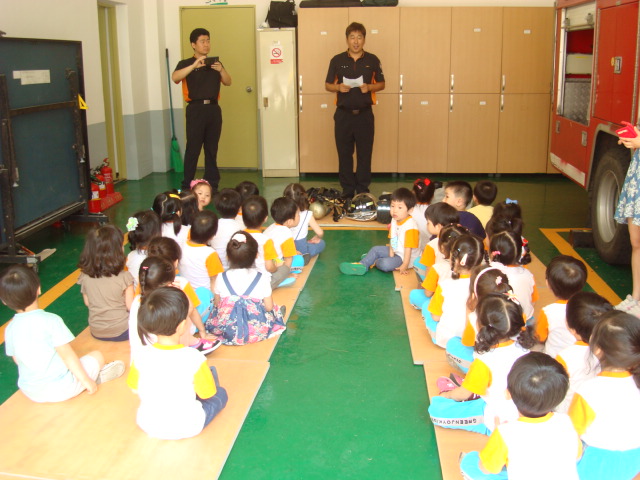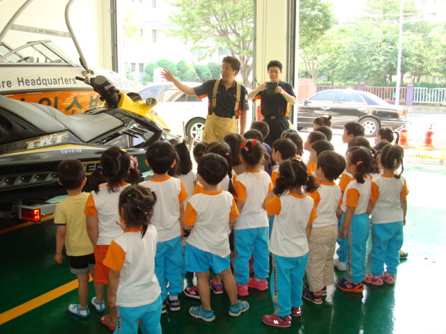 강릉소방서(서장 김남숙) 포남119안전센터에서는 2013년6월25일 10시경 꿈동산몬테소리어린이집(포남동 소재) 소방서 견학에 따라 소방서 업무소개, 소방서 장비 소개, 화재시 119신고요령 및 대피요령, 소방차 탑승 및 방화복 착용 체험, 소화기 사용 방법 및 소화기(교육용 물소화기) 사용 실습 등 "어린이 소방안전교육"을 실시하였습니다.