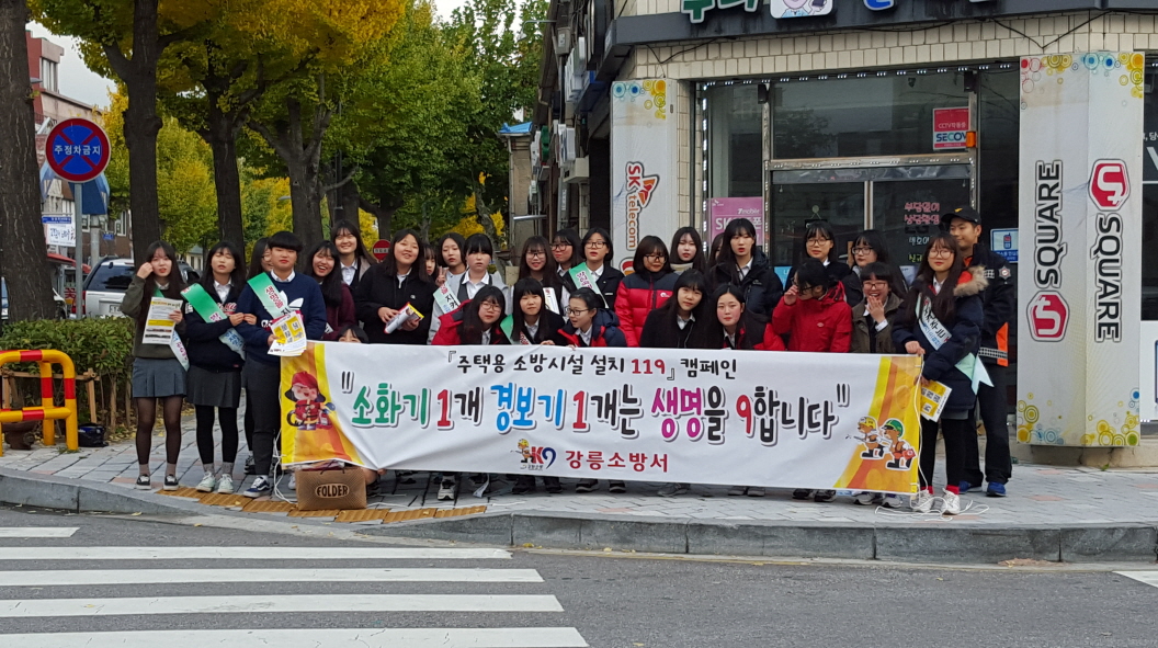 이날 캠페인은 소방서 70명, 강릉여자중학교 119소년단원 29명이 참가해 강릉여자고등학교 앞, 옥천동 홈플러스, 임당동 사거리, 옥계시장, 주문진시장에서 진행되었다. 참가자들은 겨울철을 맞아 화재 등 안전사고 예방당부, 주택용 기초소방시설 촉진 등 홍보전단지 및 홍보물을 배부했으며, 또한 소화기 사용법 및 소화기 흔들기 교육도 실시하였다.