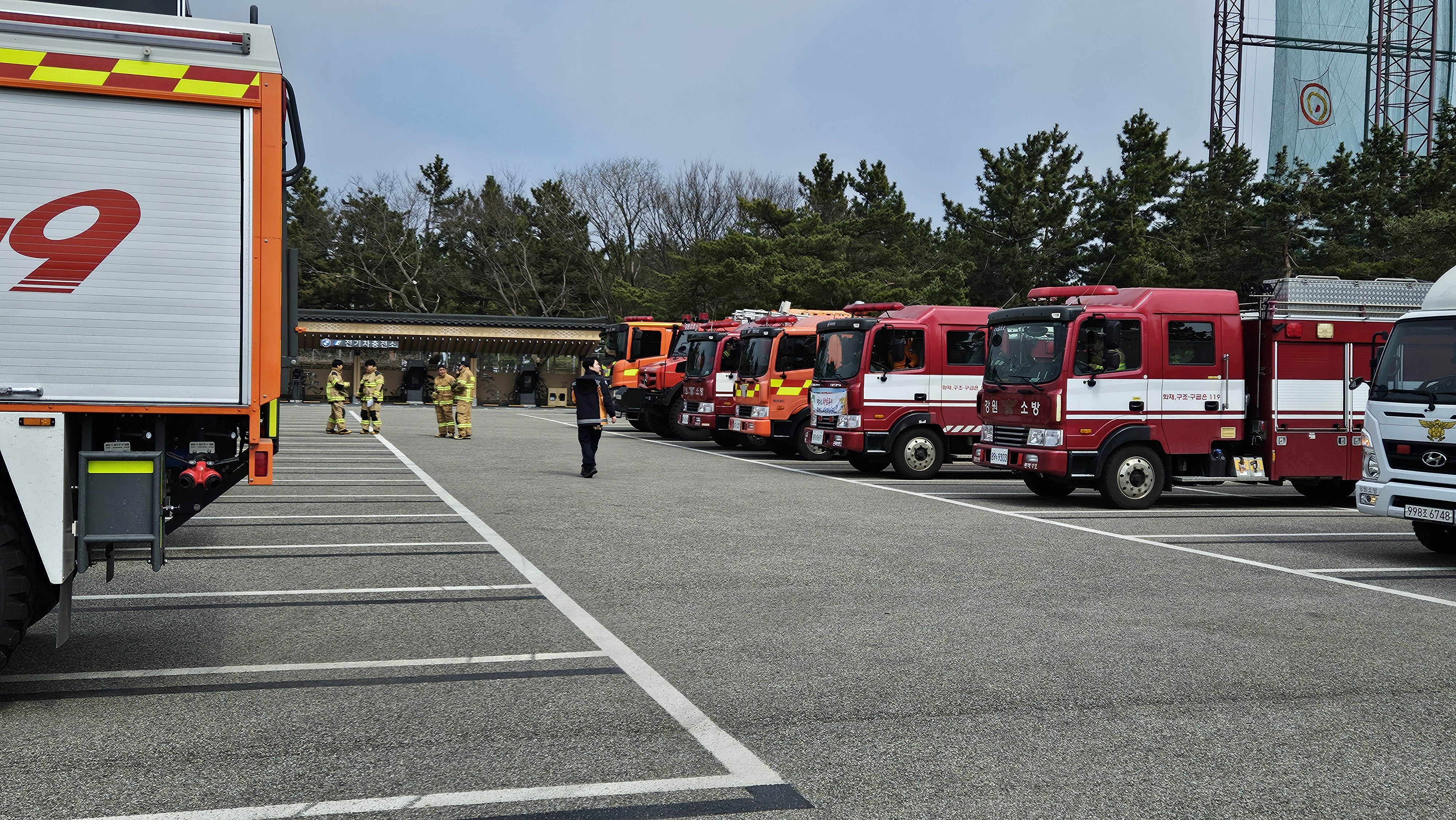 이날 훈련에는 소방본부 및 강릉을 비롯한, 평창소방서, 특수대응단, 환동해대응단, 의용소방대 등 총 인원 131명, 장비 42대가 참여했으며