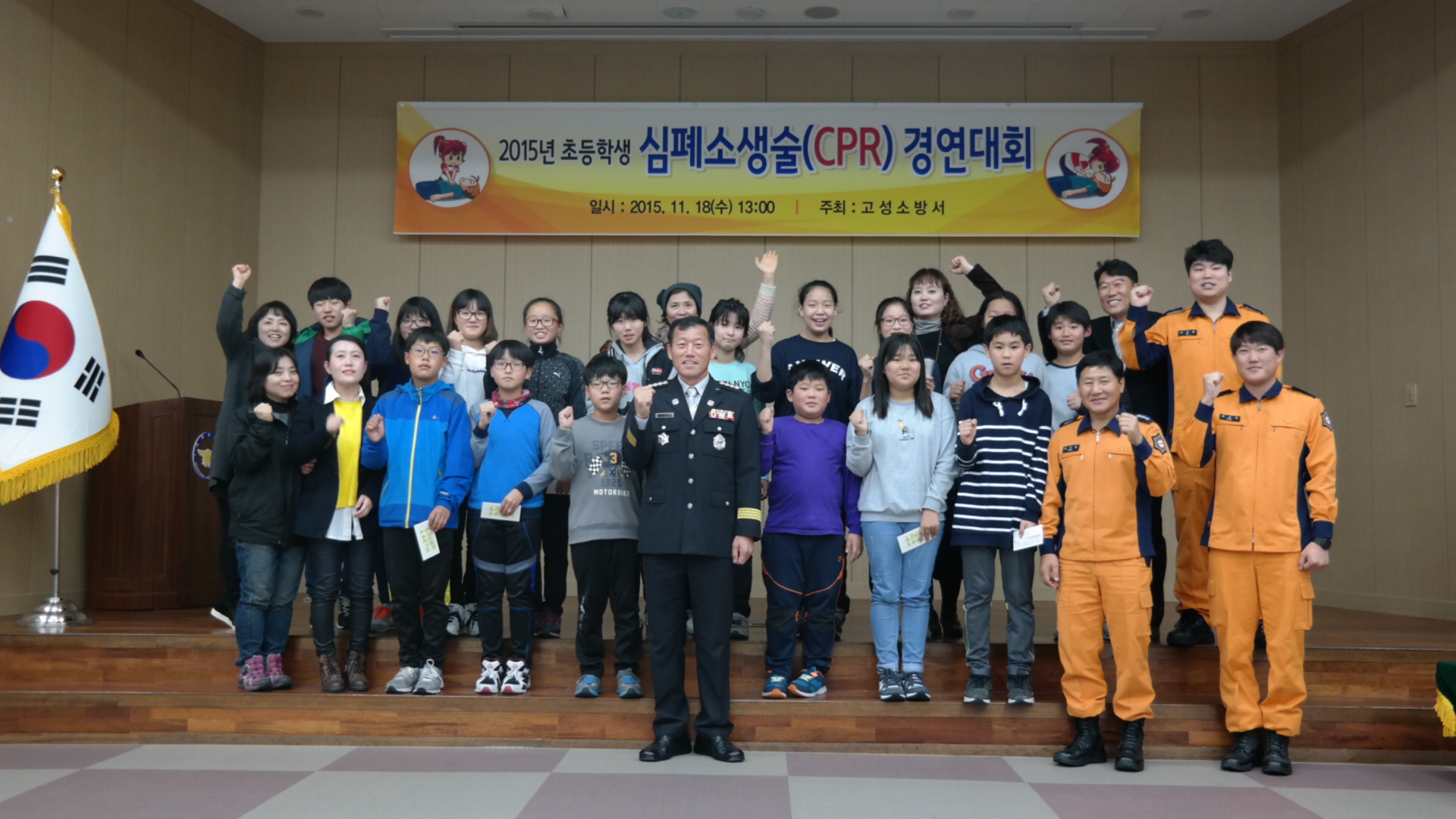 2015년 초등학생 심폐소생술 경연대회가 11월 18일 고성소방서 대회의실에서 개최되었습니다.
