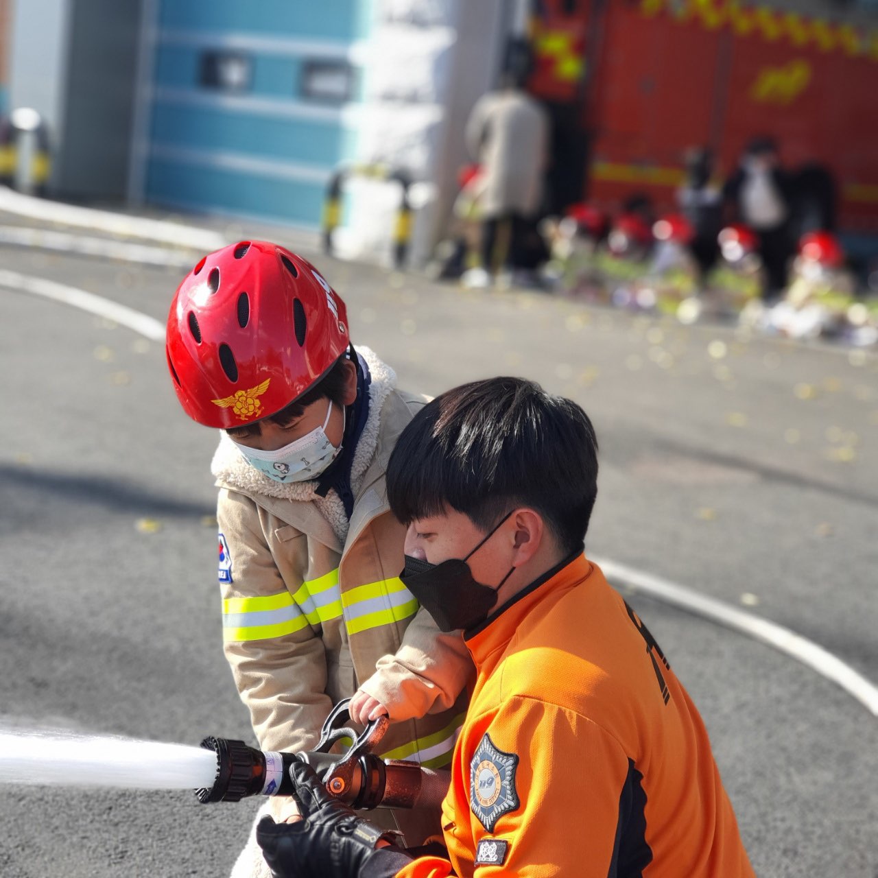 이날 소방서는 거진어린이집 50명(어린이 45, 지도교사 5)을 대상으로 진행됐다. 주요 내용은 ▲소방차량 탑승 및 소방장비 체험(펌프차량 방수 등) ▲소방동요 통한 상황별ㆍ유형별 안전교육 ▲미래소방관 교육 ▲소화기ㆍ소화전 체험 ▲심폐소생술 등 응급처치 교육 등이다.