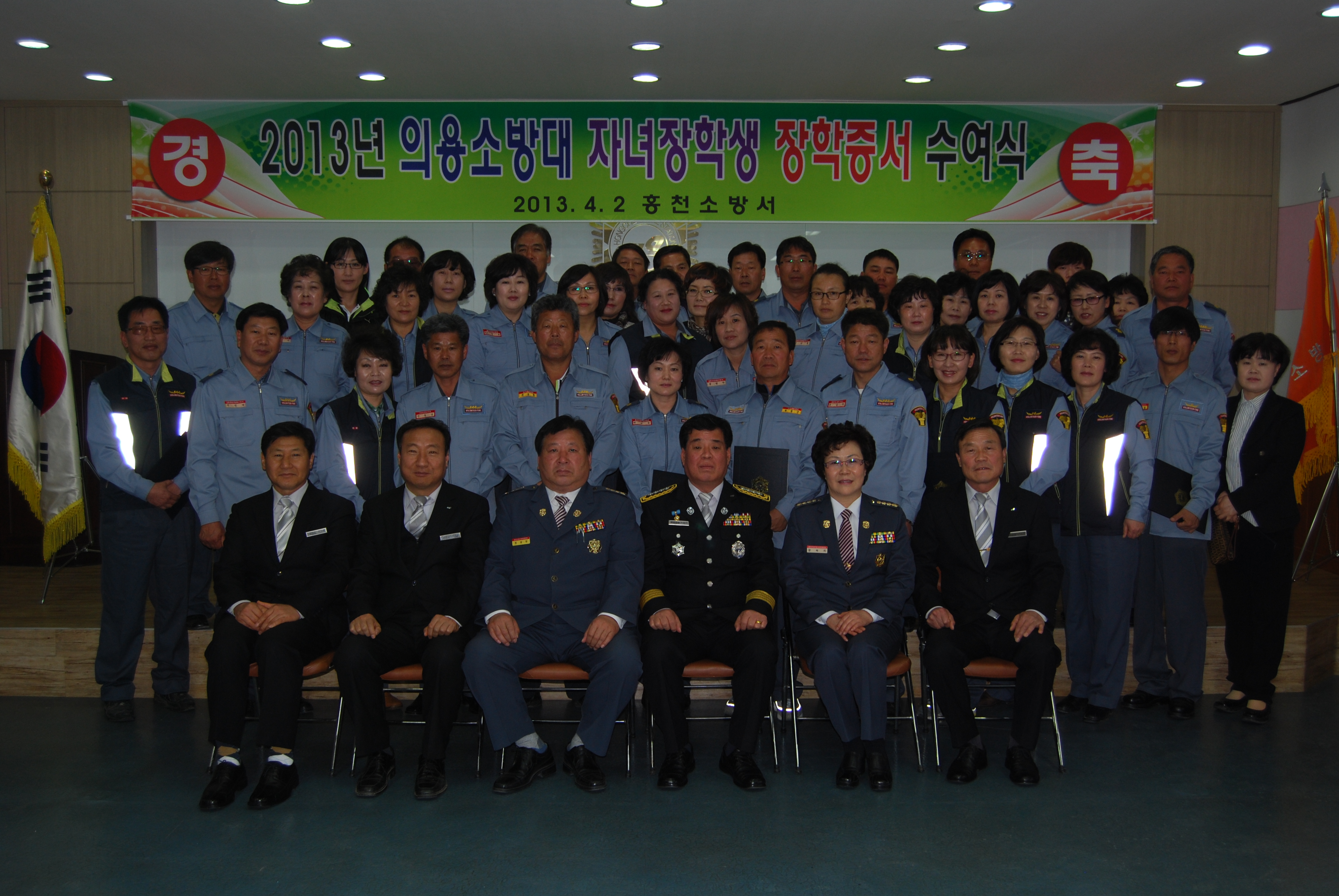 홍천소방서(서장 이종진)은 ‘13. 4. 2, 14:00경 홍천소방서 대회의실에서 2013년도 상반기 의용소방대 자녀장학생 48명을 선발하여 장학금 증서 수여식을 개최하였다.
