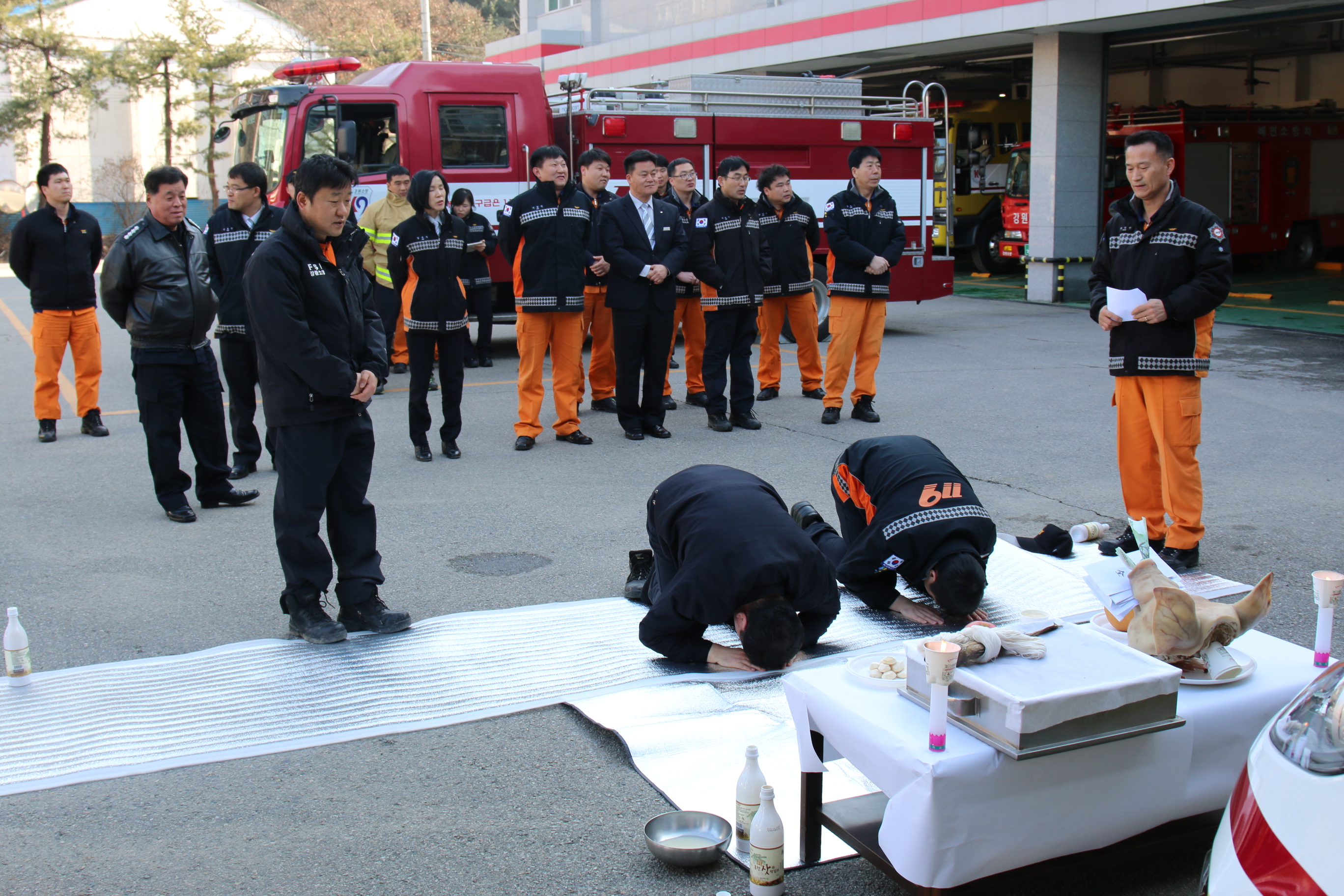 홍천소방서에서는 11(금) 16시에 화재조사차량이 신규로 입고되어 각종 화재현장 출동시 안전운행을 위하여 서장님 및 직원들이 마음을 모아 ‘안전운행 기원제’를 가졌다.