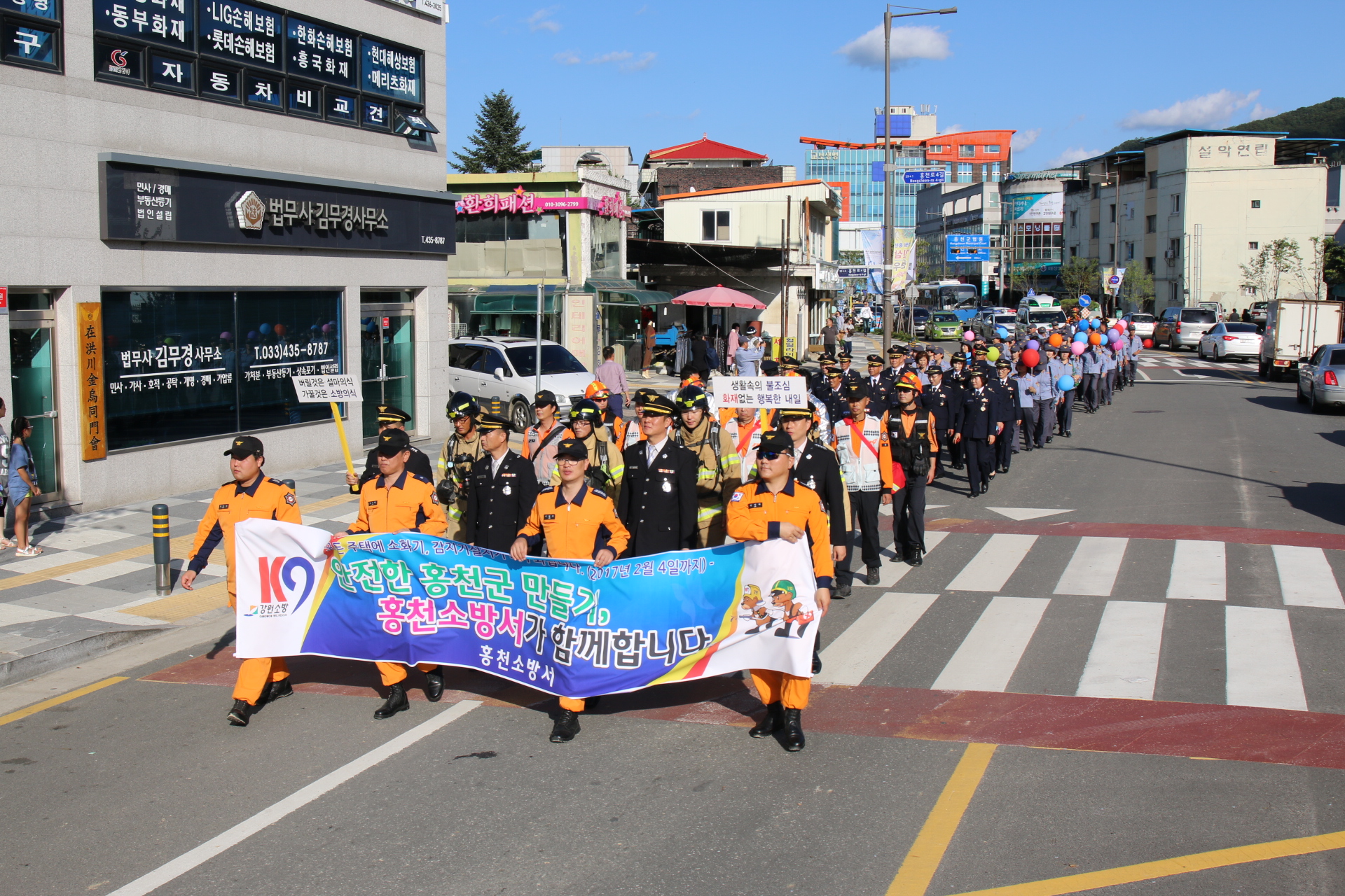 홍천소방서는 10월 3일 (월) 홍천 무궁화축제 시가행진에 참가하여 주민들의 열렬한 환호를 받았다.