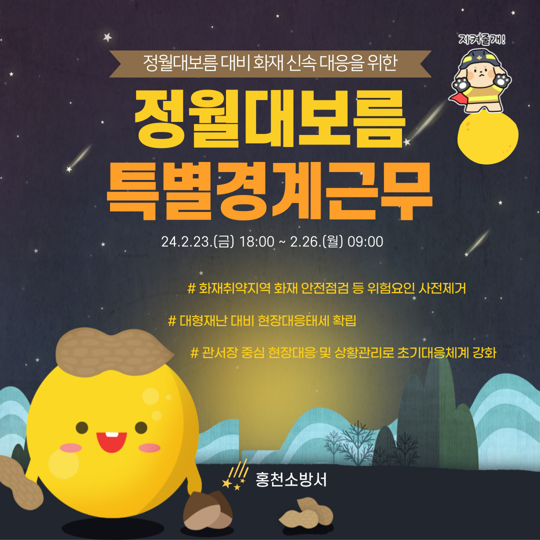 철저한 예방활동으로 홍천군민이 안전하게 정월대보름을 보낼 수 있도록 최선을 다하겠습니다!!