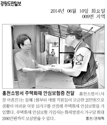 홍천소방서 십시일반 10가구 화재보험 가입(강원일보,강원도민일보, 홍천인터넷신문등/6.10)