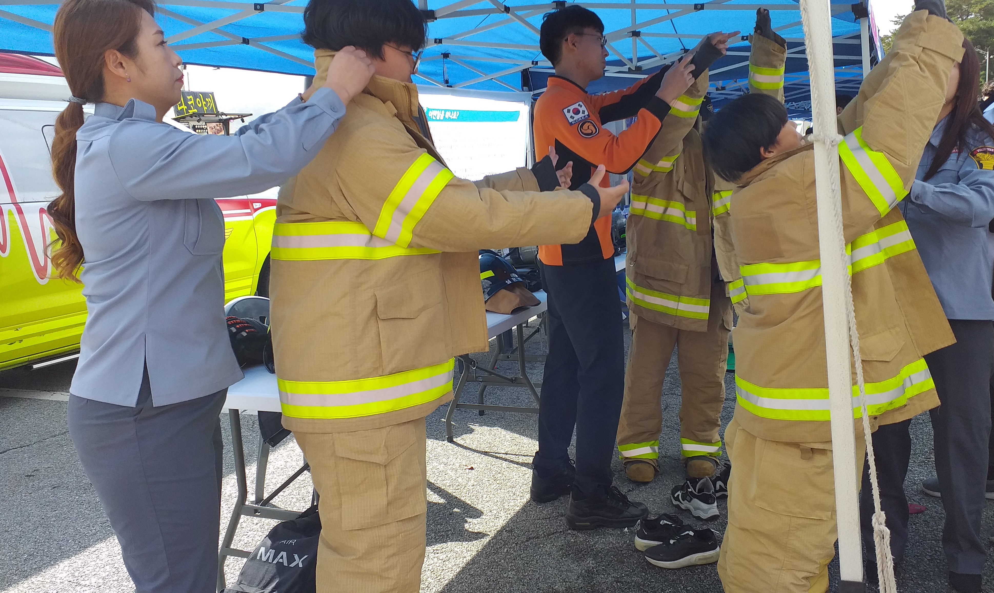 □ 홍천소방서는 박람회에 참가한 학생들에게 방화복 및 개인보호장비 착용 체험을 실시했으며 ‘119구급대원 되어보기’라는 주제로 구급차량, 구급장비 소개 및 기념사진 촬영 등이 포함되었다.