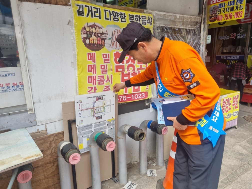 주요 내용으로는 ▲소방시설의 위치 확인 ▲점포 내 주방K급 소화기 비치 권고 ▲가스시설 및 전열기구 안전점검 ▲전통시장 ‘점포점검의 날’ 운영 체크리스트 및 주택용 소방시설 설치 홍보 등이다.