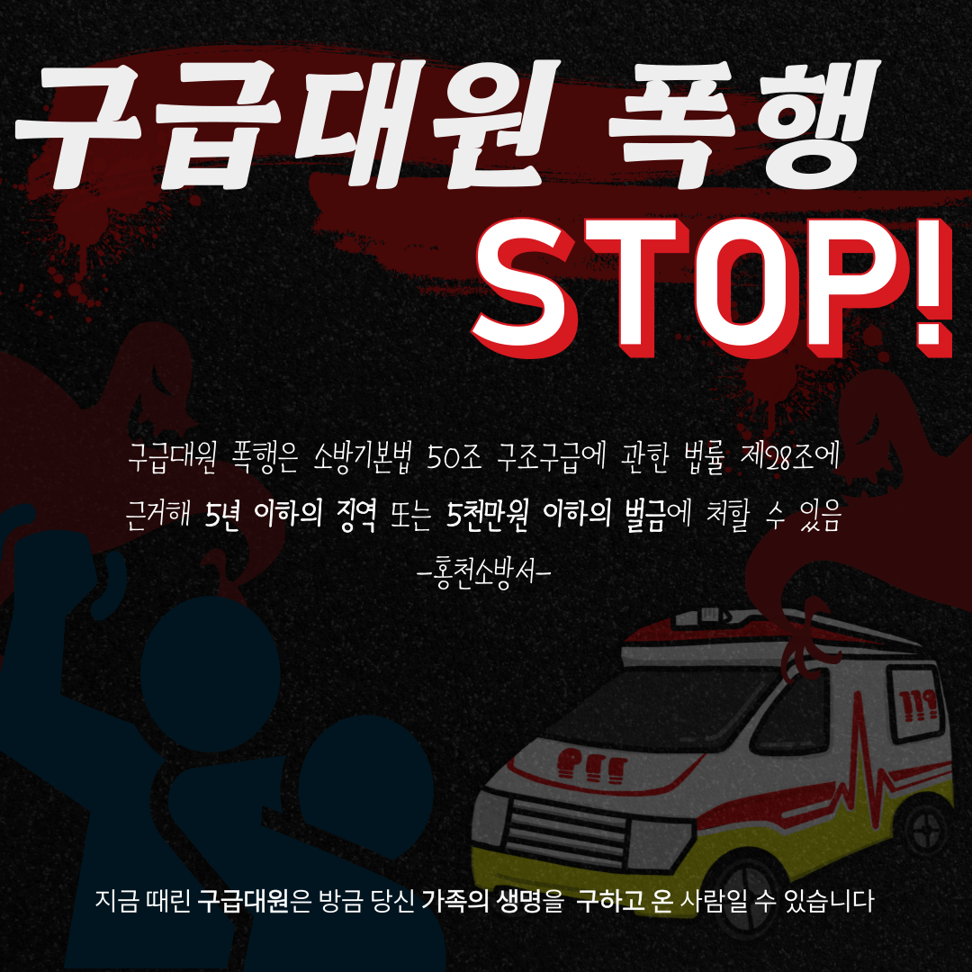 홍천소방서(서장 김숙자)는 현장에 출동한 119구급대원에 대한 폭언과 폭행을 근절해 줄 것을 당부했다.