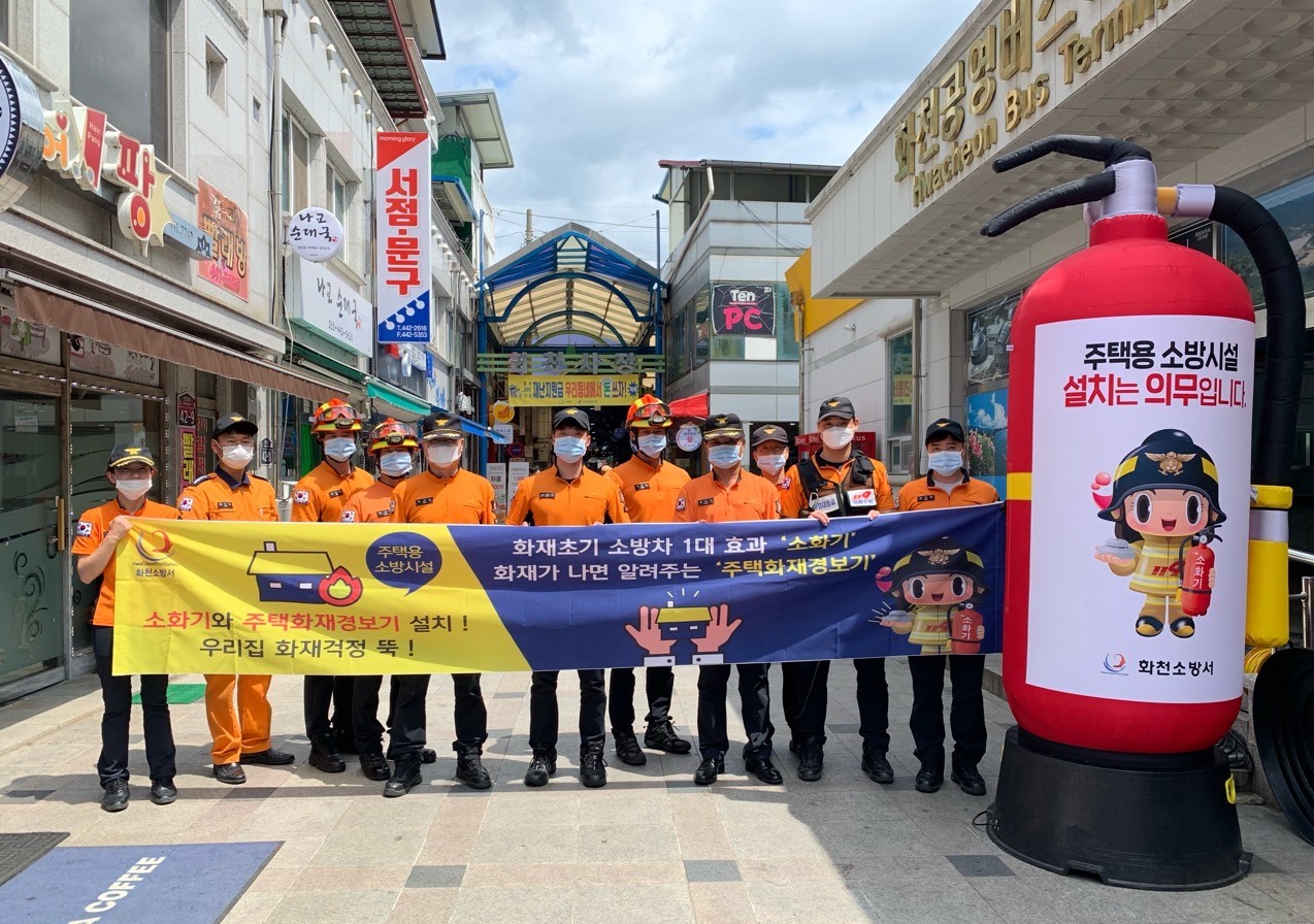 □ 화천소방서(서장 정광현)는 19일 오후 화천시장에서 6월 도민안전의 날을 맞아 주택용 소방시설 설치 촉진 캠페인을 실시했다고 밝혔다.