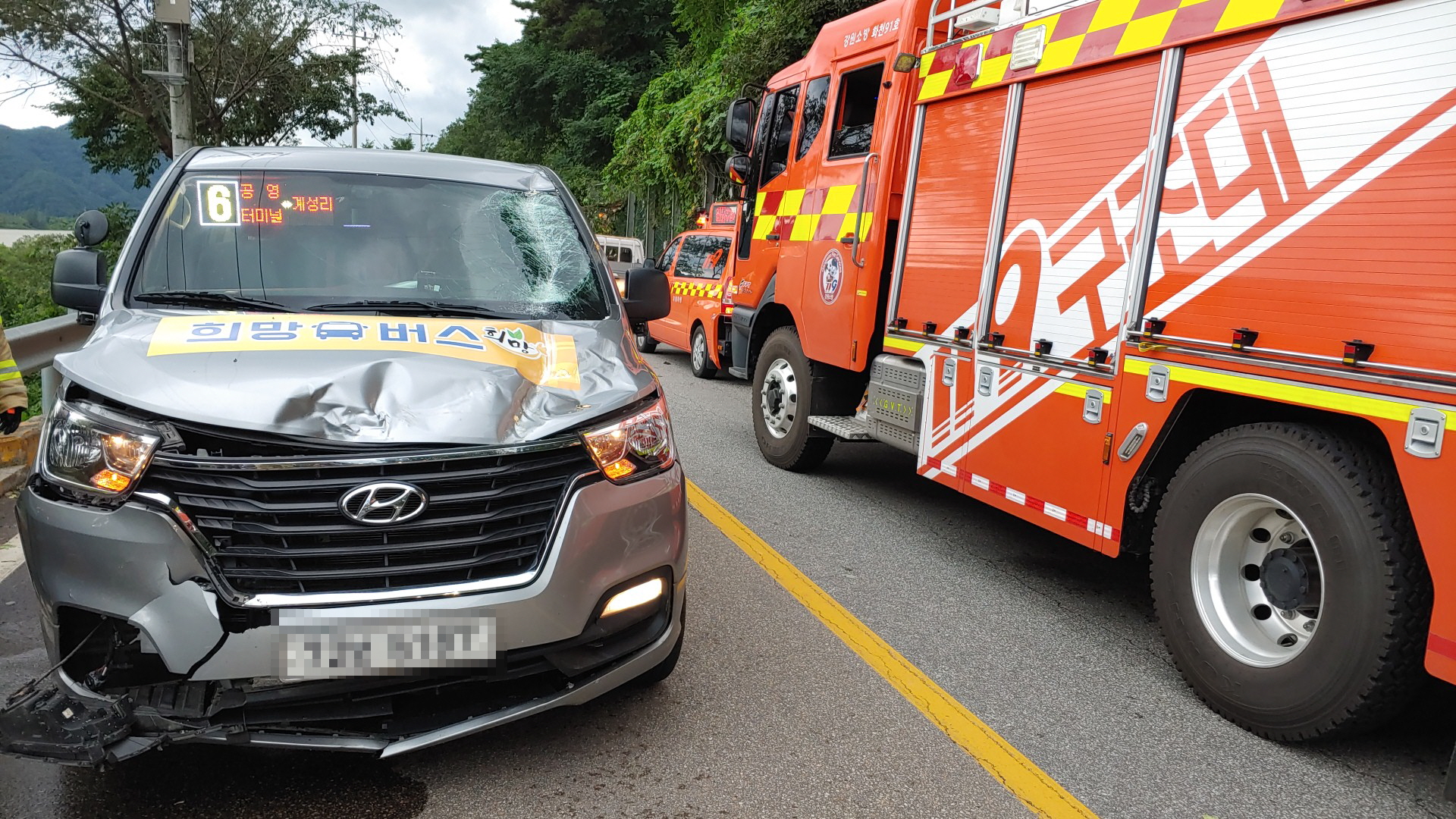 ○ 운전자 윤모씨(남,52세,경상)의 신고로 출동한 화천소방서 119구조대, 구급대 등 소방대원 11명은 차량 탑승객 6명을 구조해 4명을 병원 이송했다.
