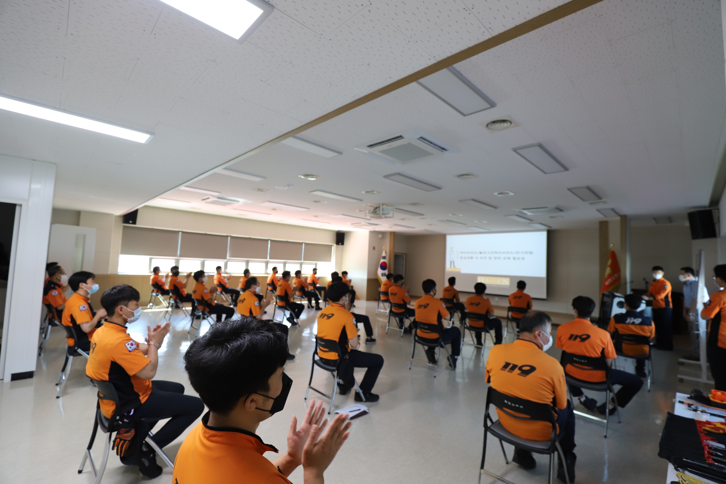 ○ 이번 전기차 화재대응 및 인명구조훈련은 코로나19 방역수칙 준수 하에 진행됐으며, 추가적으로 코로나19 예방접종 “2차 접종 완료자”에 한하여 교육장 입장을 허용한 채 진행됐다.
