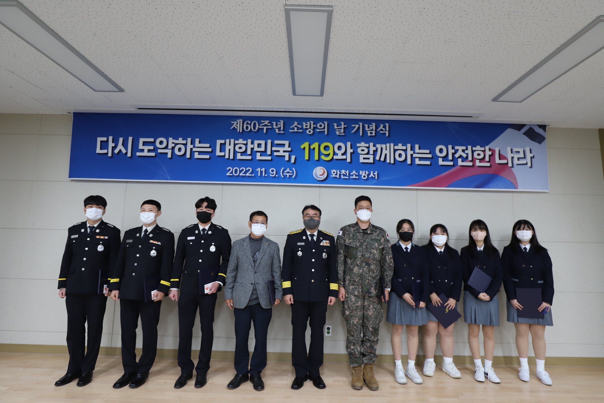 □ 화천소방서(서장 염홍림)는 11 .9. 10:00. 대회의실에서 제60주년 소방의날 기념식 자체 행사를 가졌다고 밝혔다.