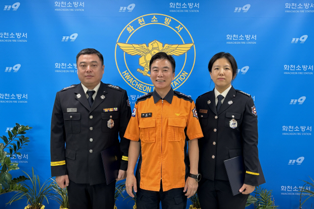 화천소방서(서장 최임수)는 16일 소방서 서장실에서 위급한 상황에서 신고자 심폐소생술 안내와 적절한 응급처치로 소중한 생명을 구해낸 구급대원 2명에게 하트 세이버 증서를 수여했다.