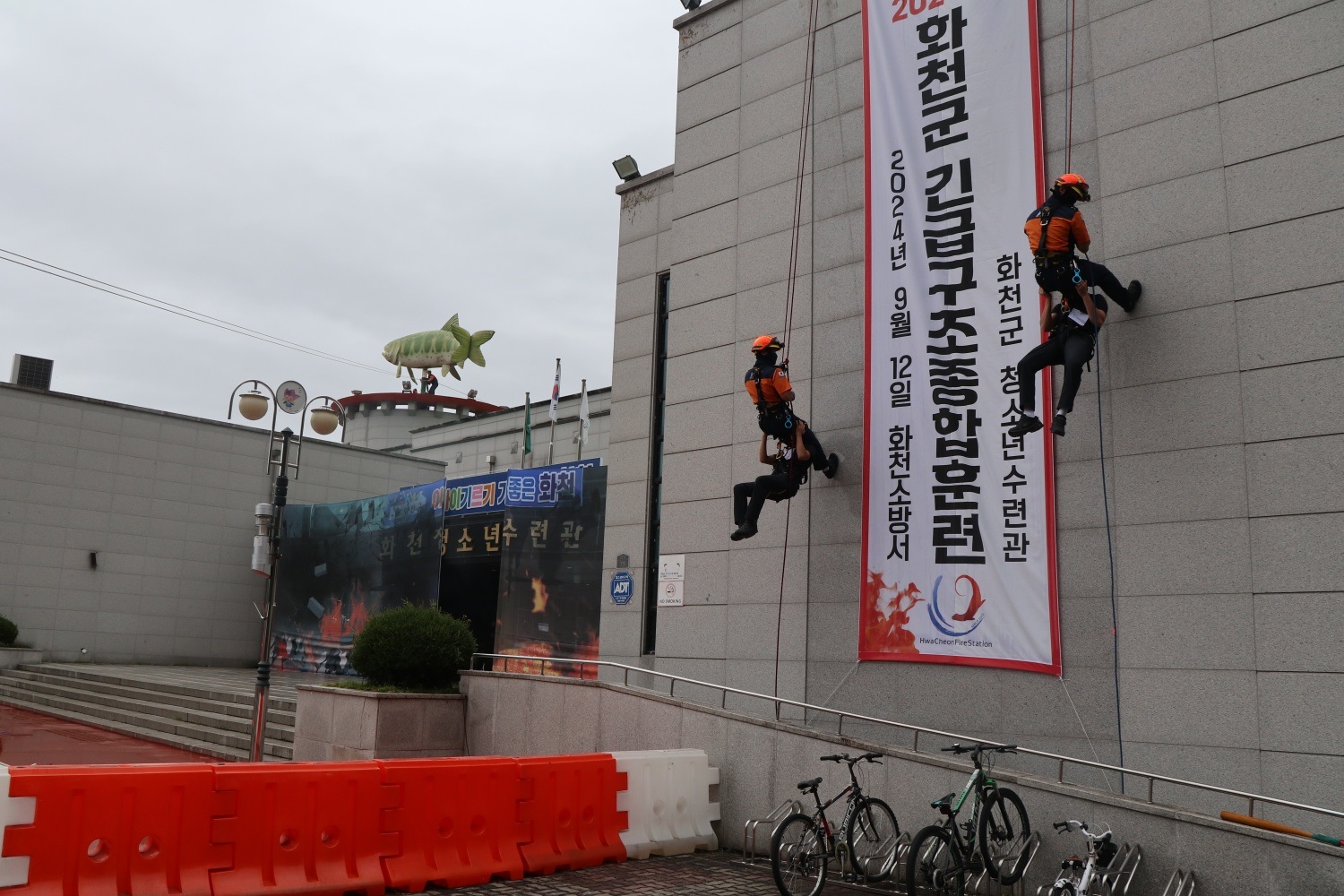 12일 화천군 청소년수련관에서 긴급구조종합훈련을 실시했습니다.