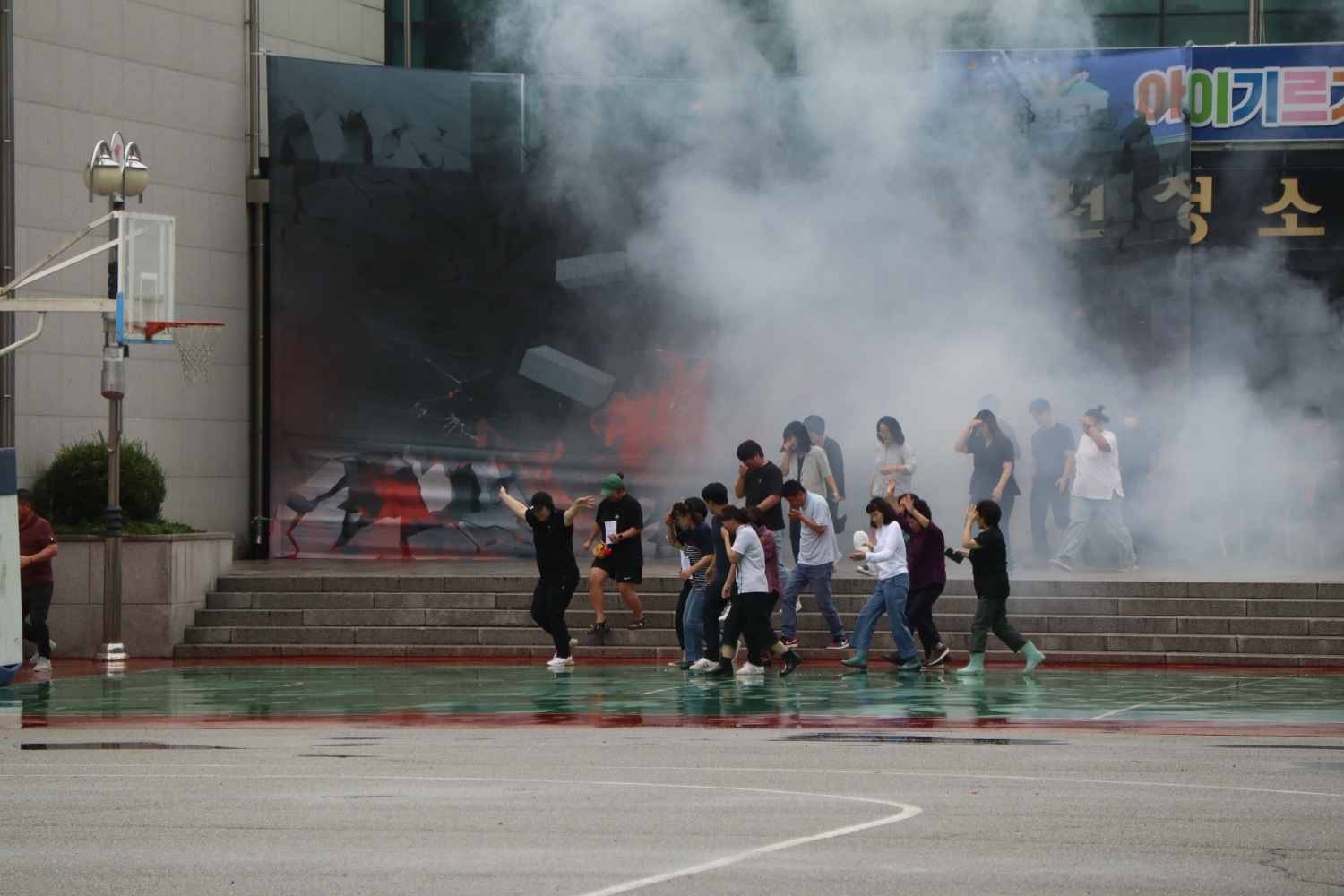 이번 훈련은 가스 폭발로 인한 청소년수련관에서의 대형화재와 건물 붕괴를 가정해 진행했습니다.