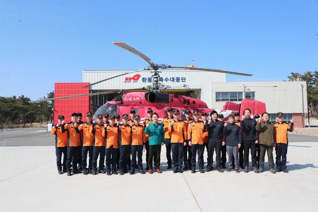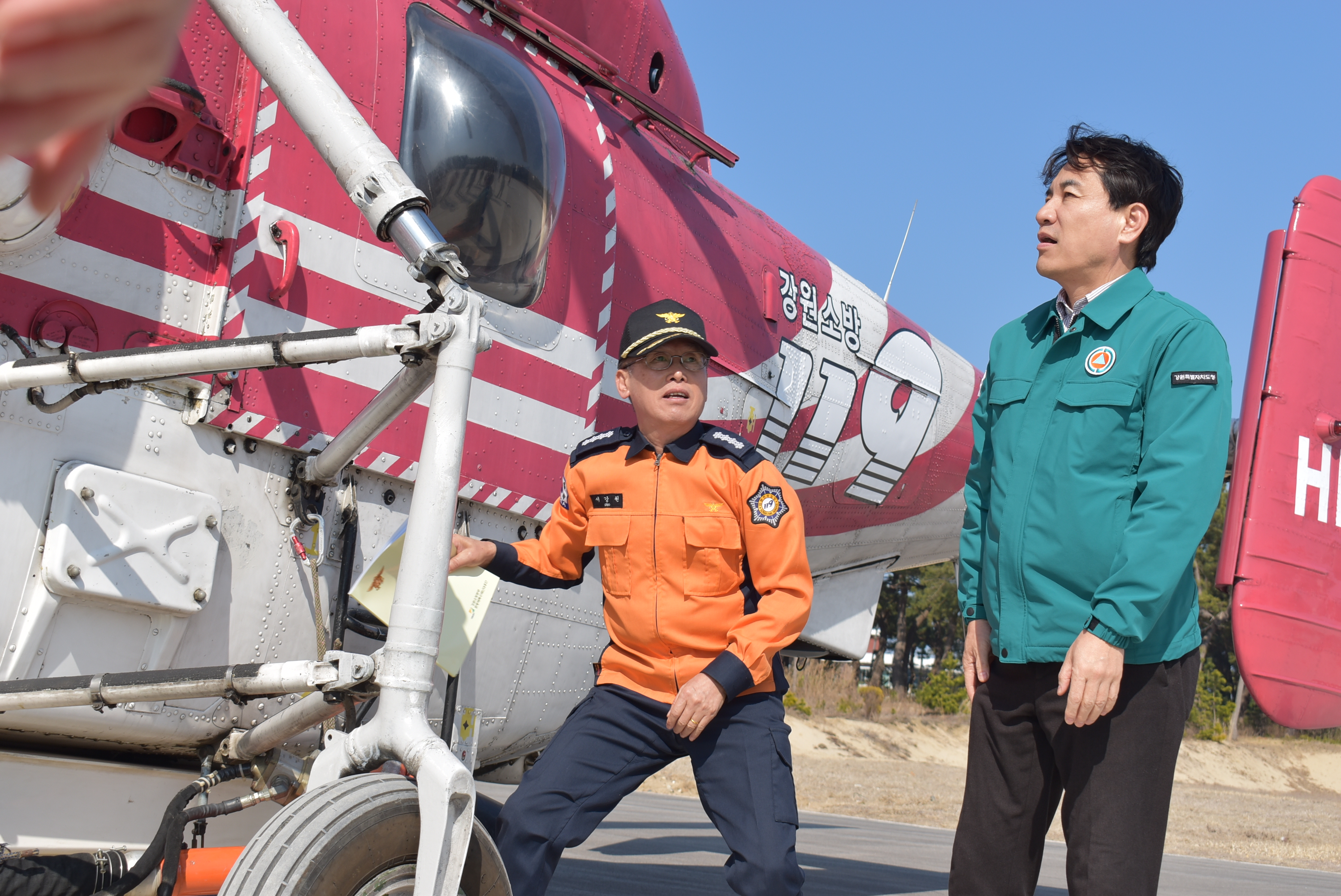 김진태 강원특별자치도지사는 환동해특수대응단에 배치된 임차헬기의 운영사항을 점검하기 위해 3월14일(목) 방문하였다.