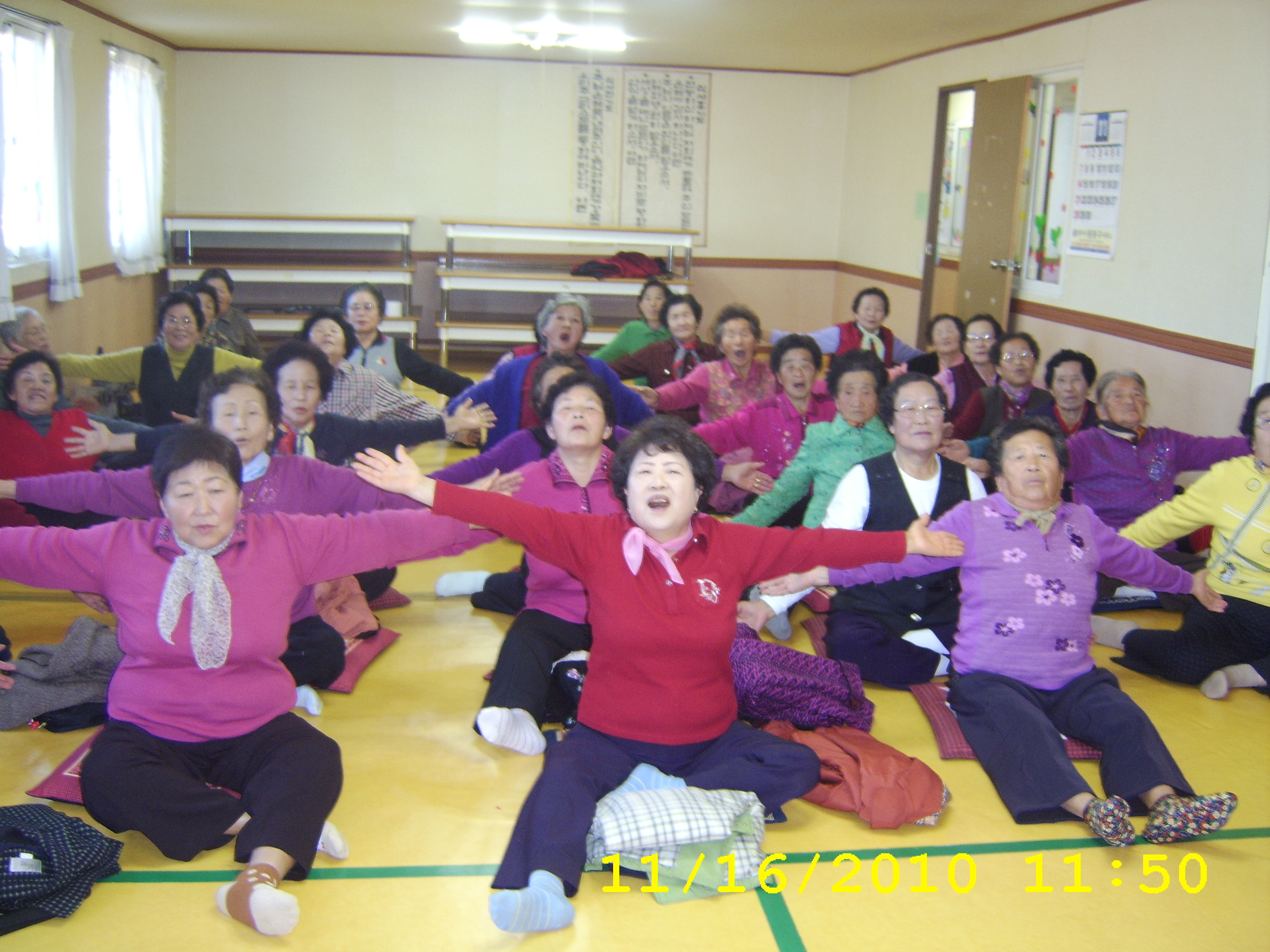 허은란 대원은 레크레이션 및 노인댄스를 가르쳤습니다.