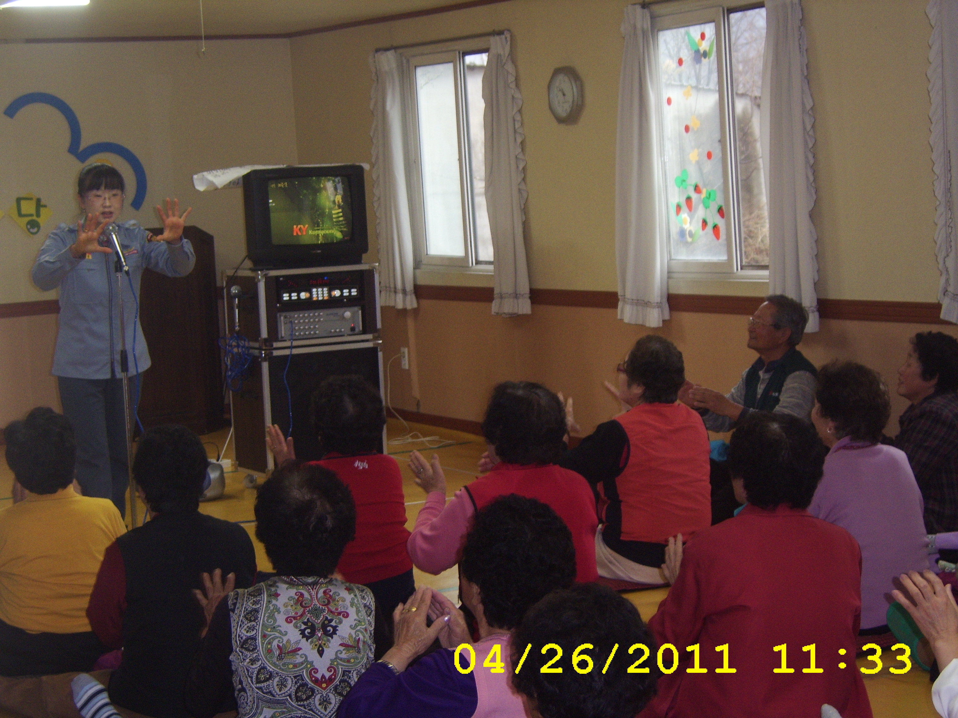 둔내노인대학에서 율동및 레크레이션 봉사를 하였습니다.