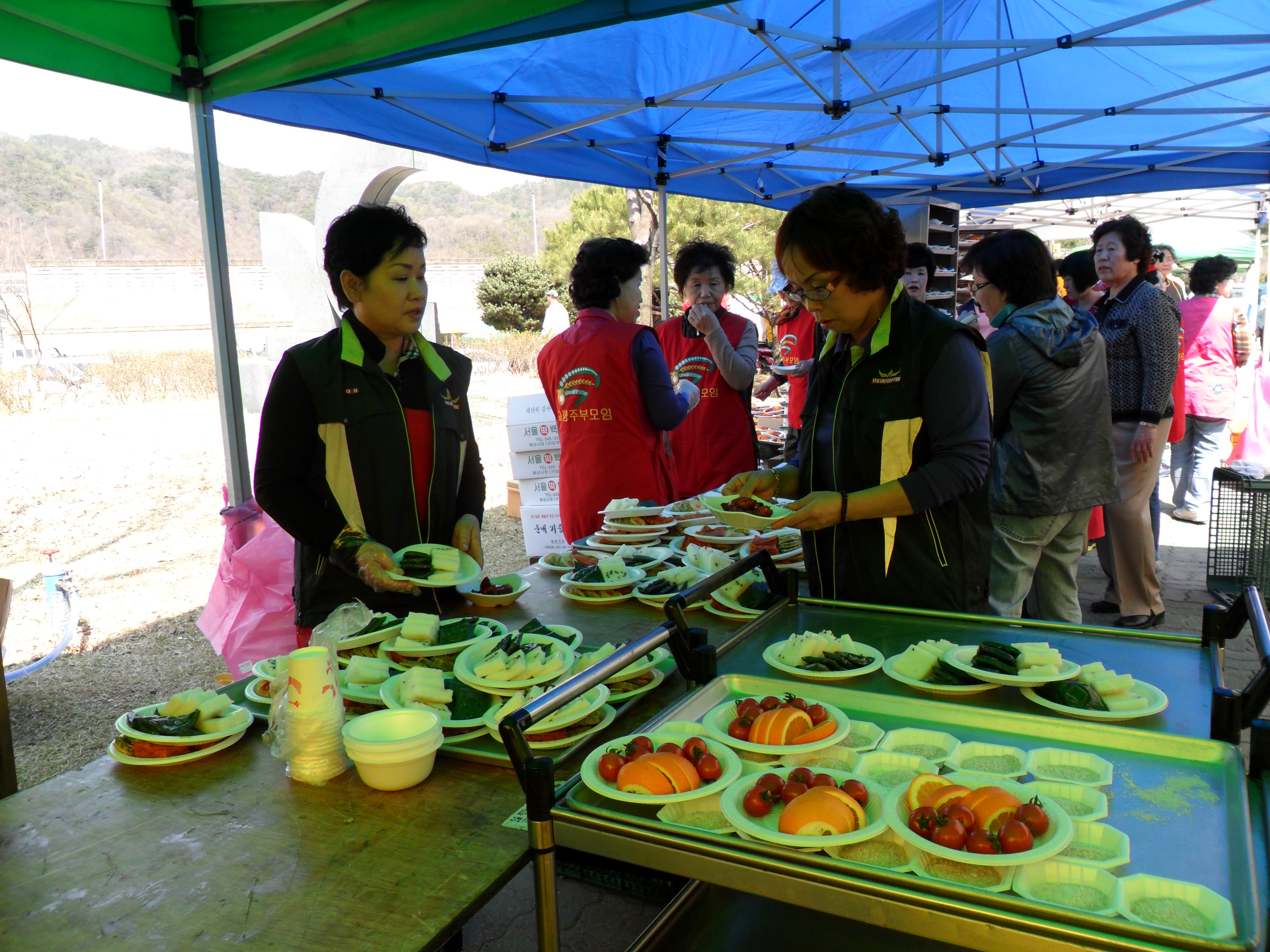 2012년 4월 20일 (금) 횡성여성의용소방대 박선숙대장 등 대원15명은 장애인 체육대회에서 장애우분들과 어르신들께 식사 및 다과를 제공하였습니다.