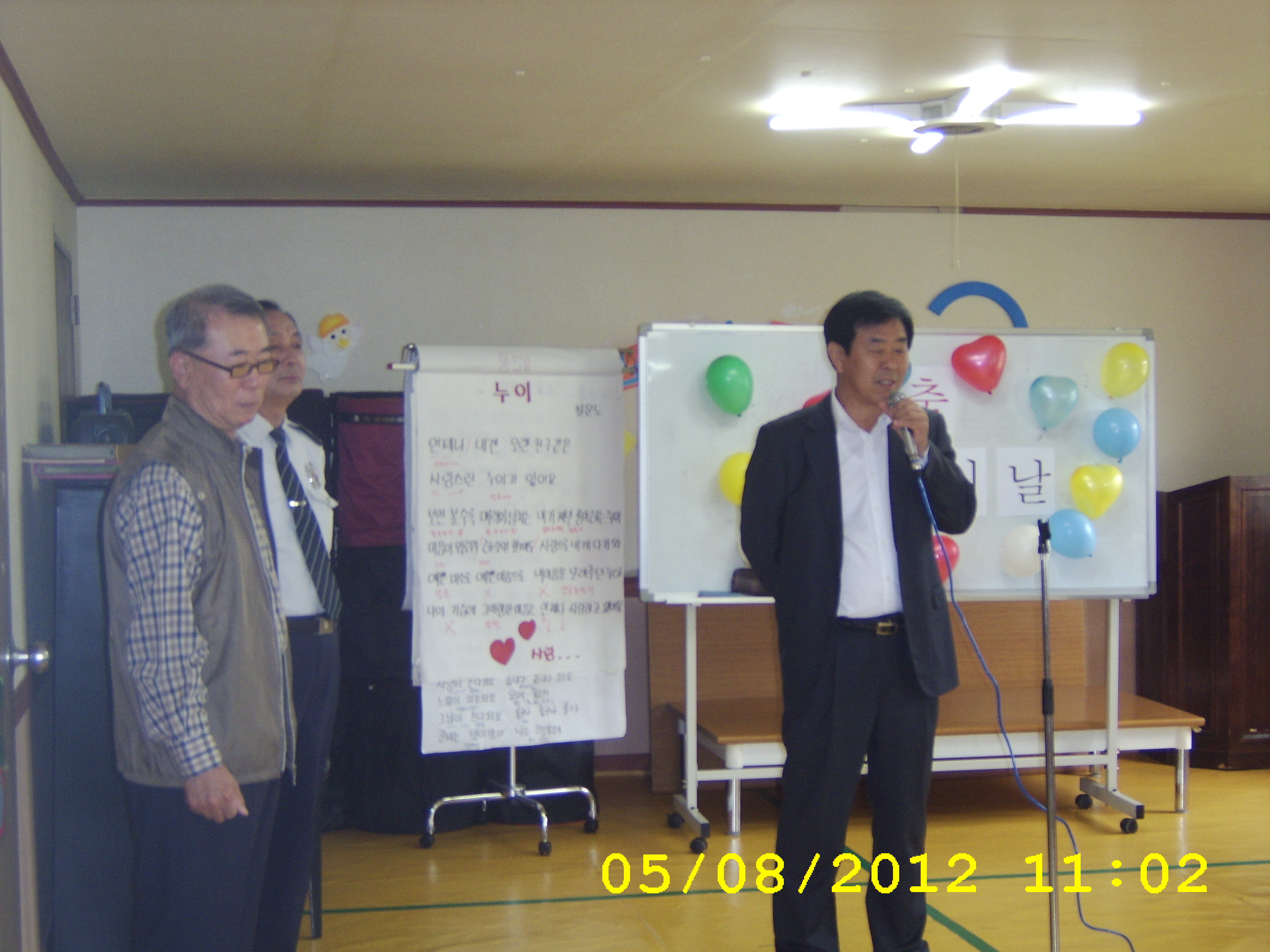 둔내노인대학에서 카네이션 달아드리기 및 장기자랑에 참여...즐거운 시간을 보냈습니다.