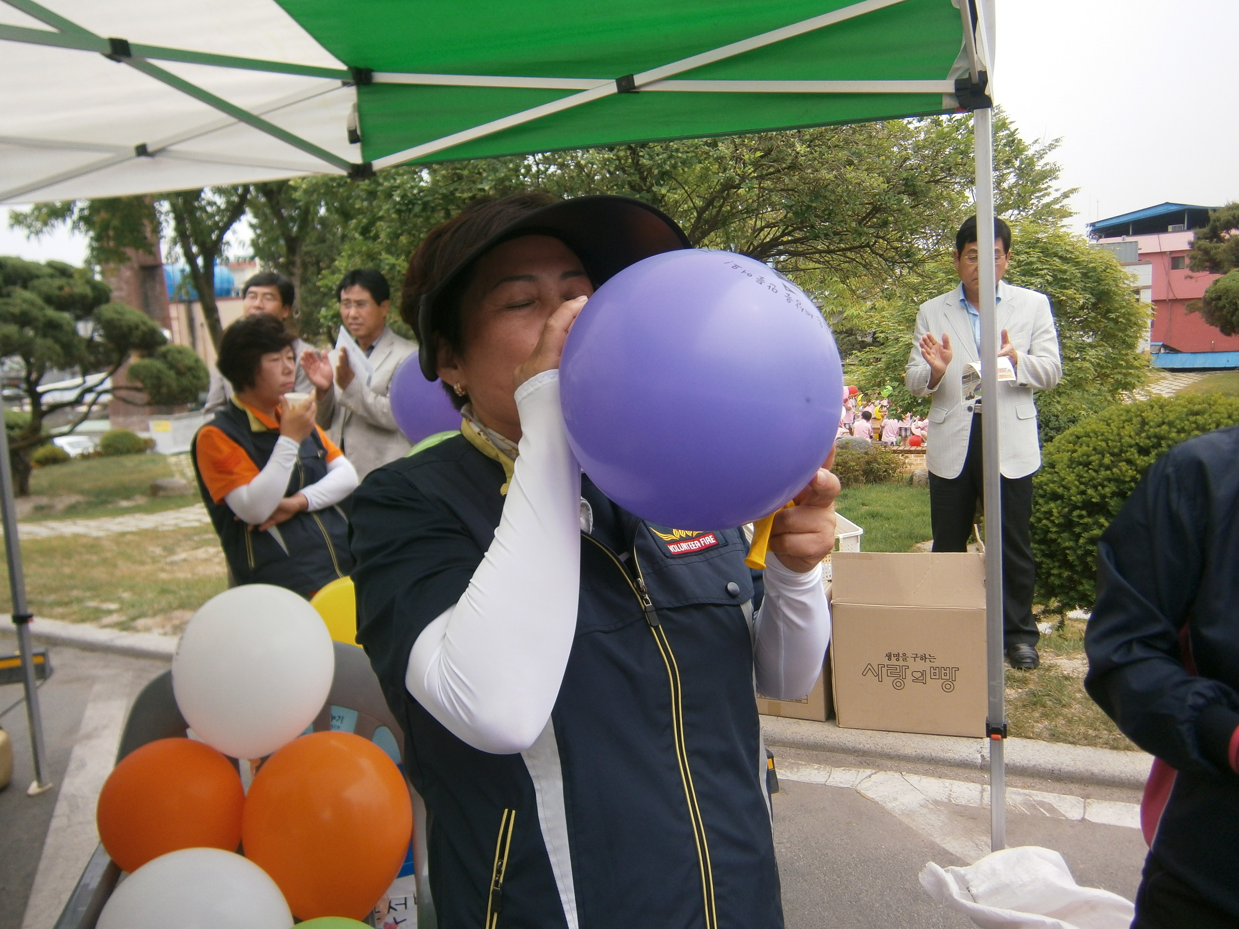 청일 여성소방대 대장(이명순)외 대원들은 5월 24일 횡성 군청에서 열린 강원도민 지구촌 사랑나눔 축제 (사랑의 점심나누기 캠페인)에 참여하여 풍선도 불고 사랑의빵 저금통을 배부 했습니다. 또한 다 채워진 사랑의빵 저금통을 회수하여 저금통 안에 들어있는 동전을 세어 세계의 어려운 아이들이 따듯하고 맛있는 점심을 먹을 수 있도록 봉사하였습니다.