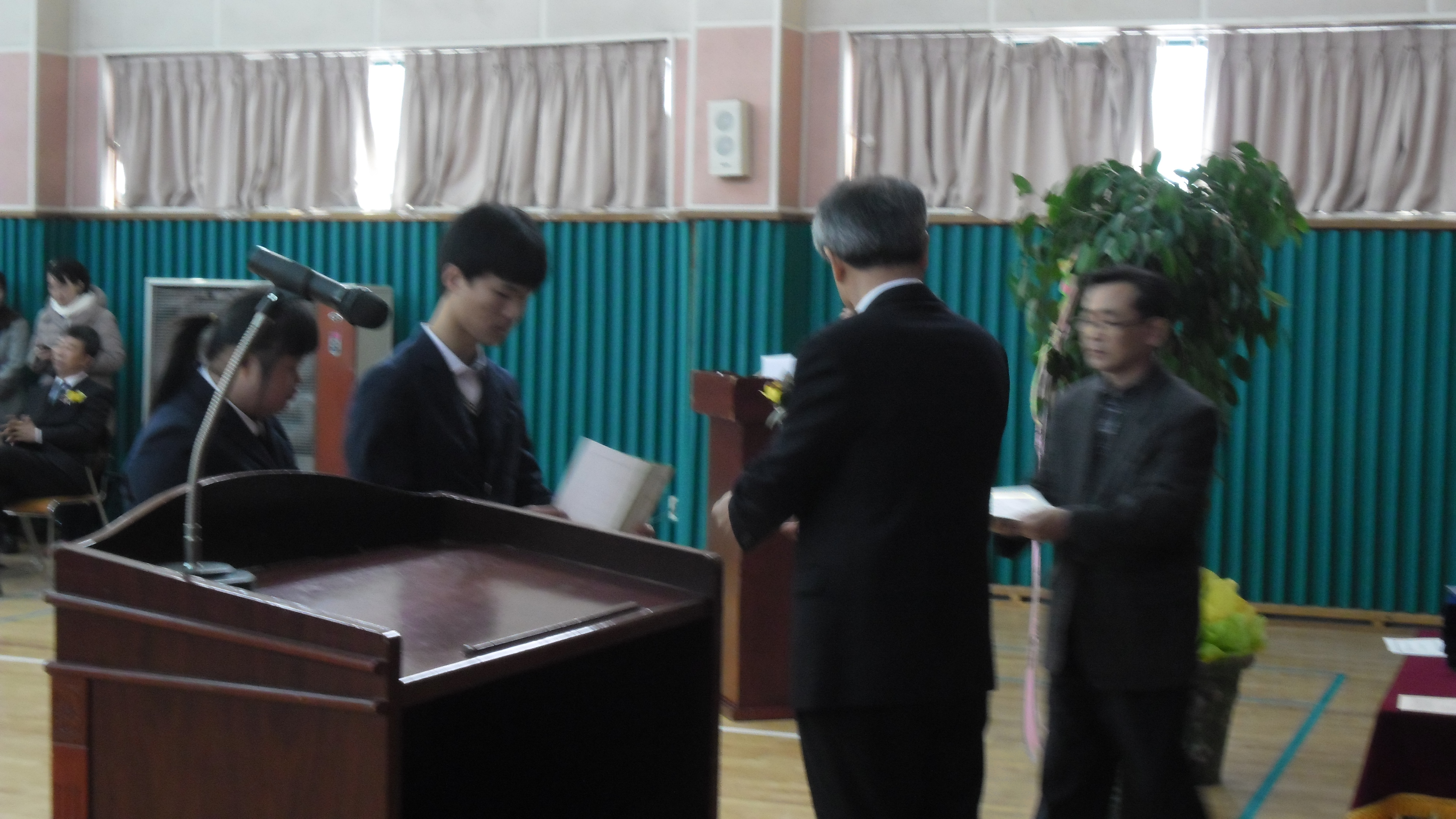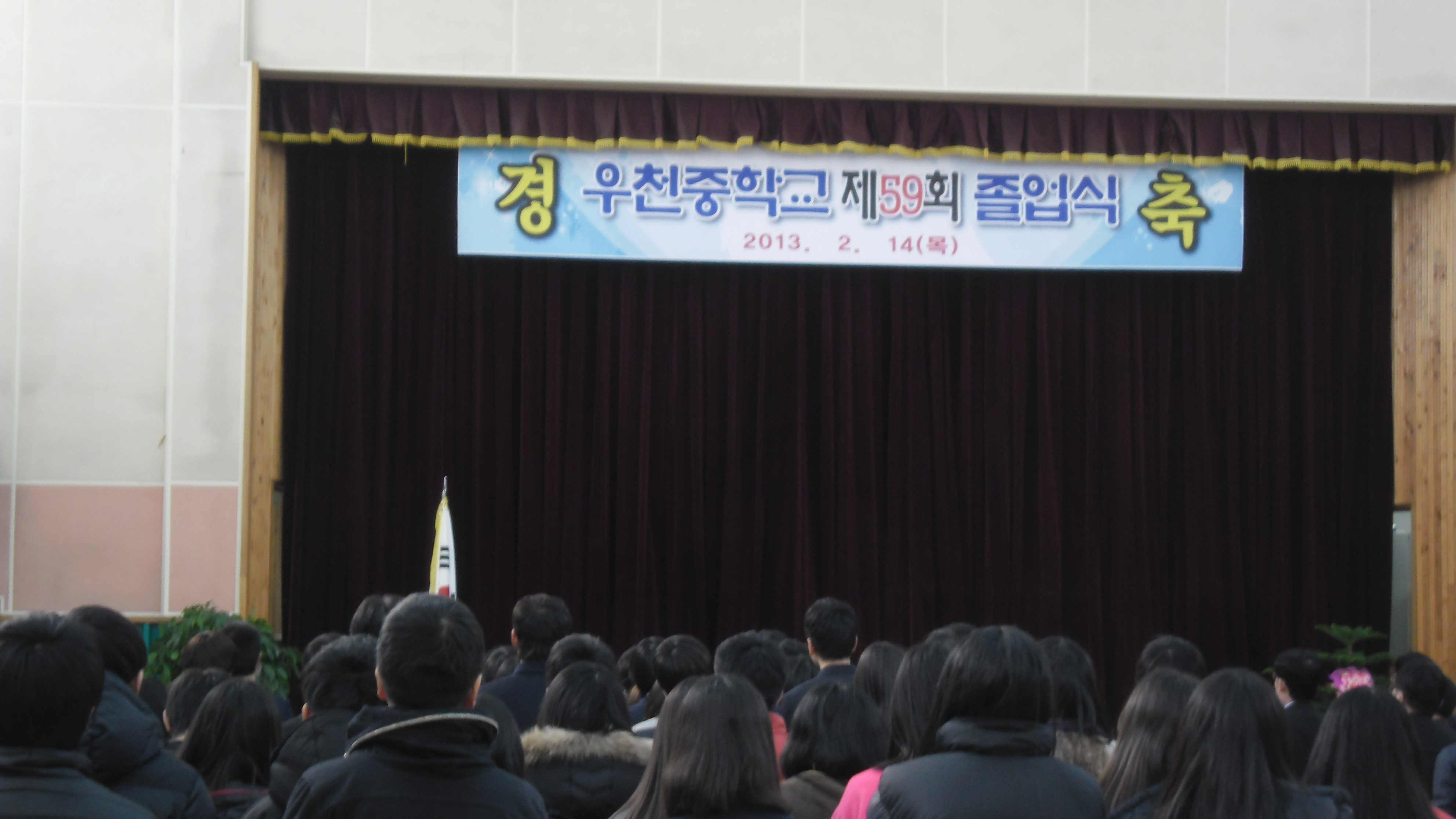 우천 여성대와 자매결연 맺은 조손 가정 공인식 학생이 중학교 졸업식을 2013년 2월14일 우천 중학교 강당에서 있었다 항상 할머니랑 함께 사는 인식이를 볼때 마다 부모가 얼마나 그리울까 했는데 그래서 인식이 한테 갔다 올때면 내 마음도 많이 아팠는데 이날 드디어 인식이 아버님을 ?수 있었다 첨으로 인식이한테서 아빠가 오셔서 좋아 하는 밝은 표정을 보았다 축하 하러 갔던 대원들도 넘 행복해 하는 인식이를 볼수 있어서 다같이 행복한 하루 였다 그리고 아버님께 인식이 한테 자주 자주 와서 행복한 미소를 잃치 않게 해 주십사고 다짐도 받았다 착하고 순수한 인식이가 자신있게 고등학교 생활도 잘 할수 있게 도와 줘야겟다고 다짐한 하루였다^^